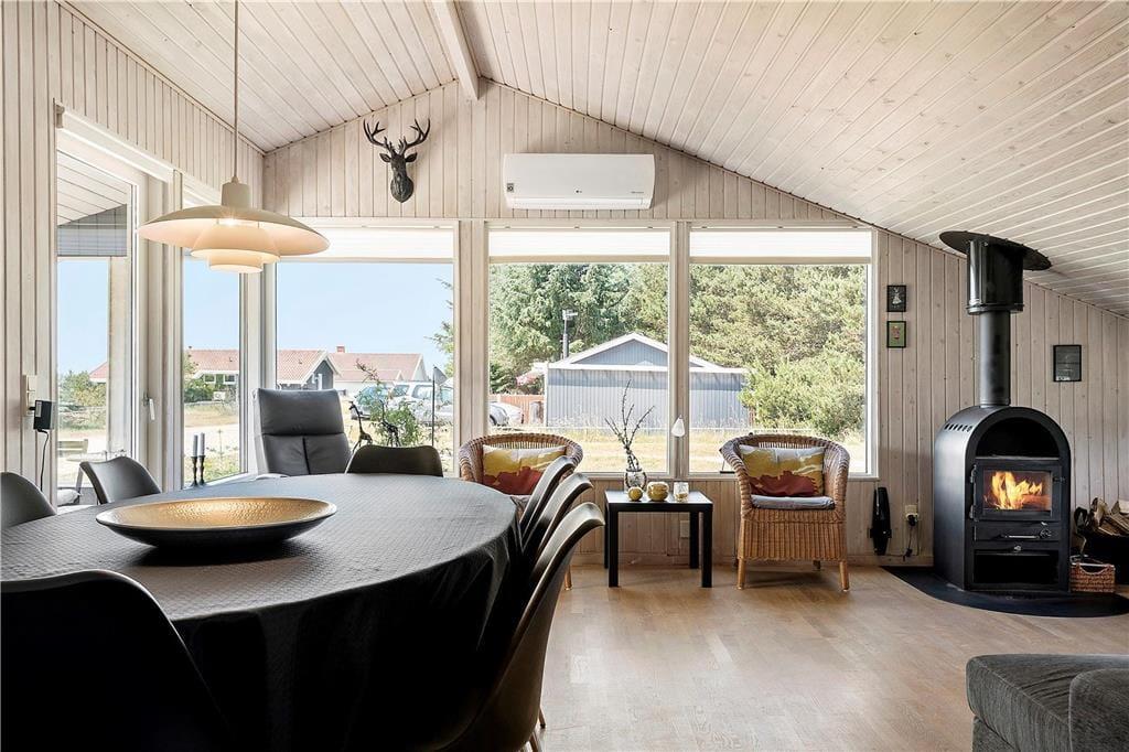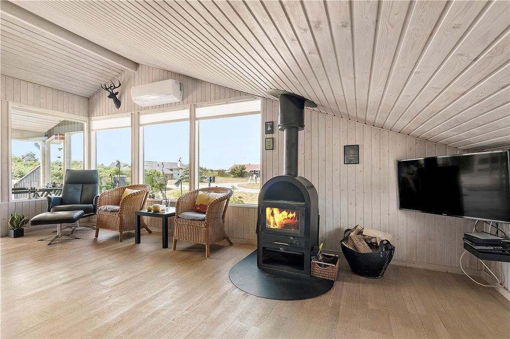 Træd ind i sommerhuset på Nordsøvej 180, hvor du straks mærker den behagelige atmosfære, der omfavner dig. Det velindrettede interiør kombinerer moderne stil med hyggelige detaljer, og den stemningsfulde brændeovn står klar til at sprede en blid varme, som inviterer til lange, afslappende aftener. Her kan du forestille dig at sætte dig ned med en god bog, mens ilden knitrer i baggrunden, eller nyde en hyggelig samtale med dine nærmeste i den lyse stue. Sommerhusets gennemtænkte indretning og varme farvetoner skaber en ro, hvor både krop og sjæl får mulighed for at hvile og genoplades. Med komfort og charme i højsædet er dette hjem et perfekt tilflugtssted, hvor du kan skabe minder og opleve den ægte danske sommerhusstemning.