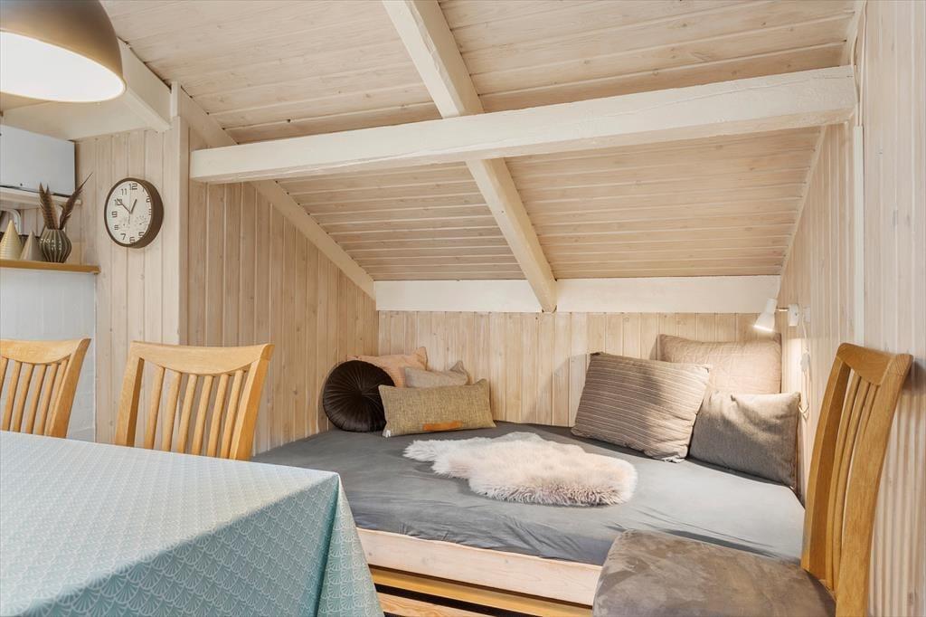 Træd indenfor i dette hyggelige sommerhus, hvor den varme atmosfære med det medrivende skær fra brændeovnen straks byder dig velkommen. Her er der indrettet med omtanke, så hvert hjørne emmer af charme og personlighed. De smagfuldt udvalgte møbler og den nøje tilrettelagte indretning giver en følelse af hjemlig tryghed og komfort, der får tiden til at stå stille. Du kan forestille dig de hyggelige aftener, hvor du og dine nærmeste samles omkring ovnen og nyder den blide varme, mens historier og grin fylder rummet. Her skaber sommerhusets indbydende interiør den perfekte ramme om uforglemmelige stunder, hvor både krop og sjæl får fornyet energi.