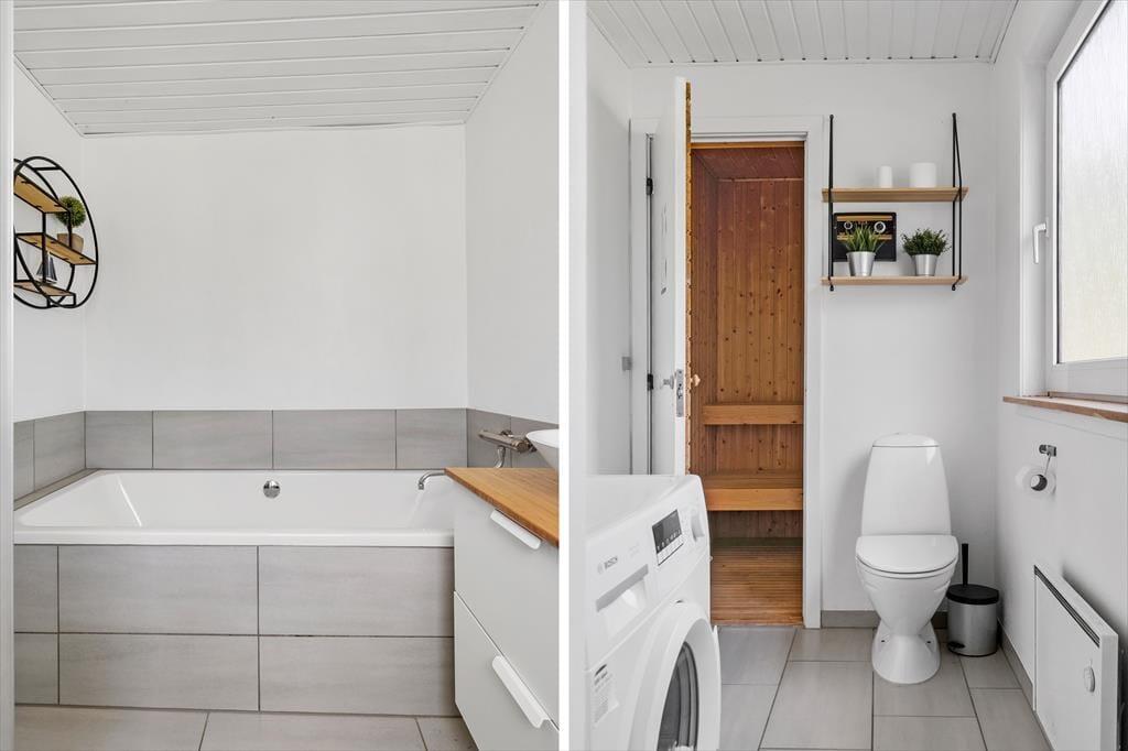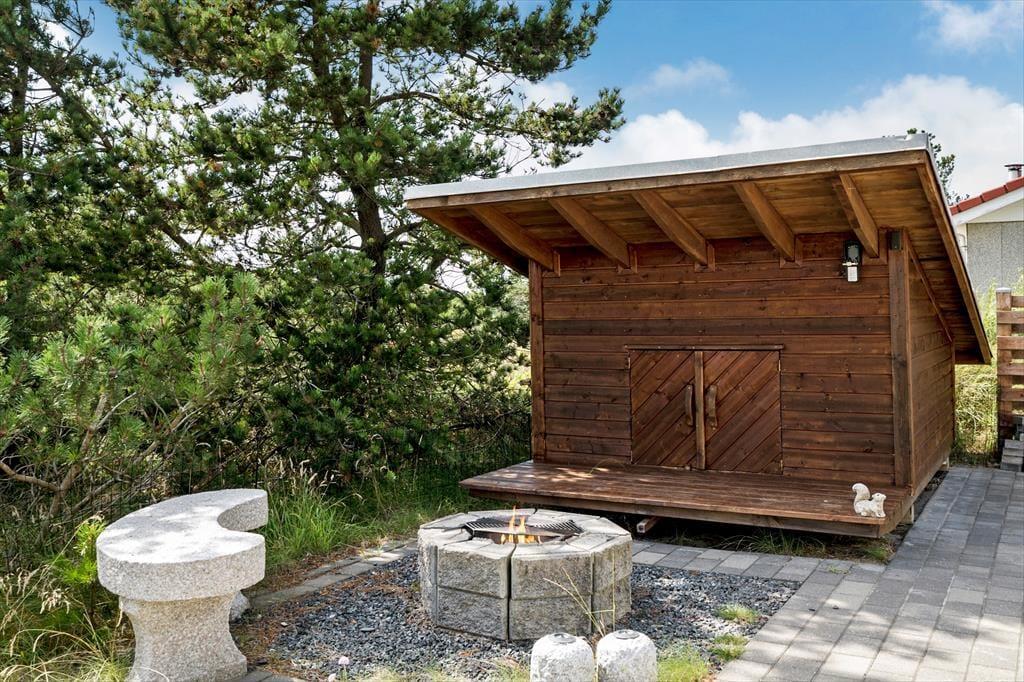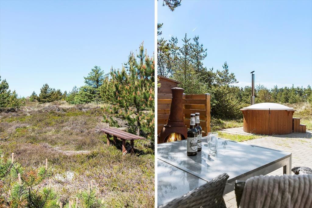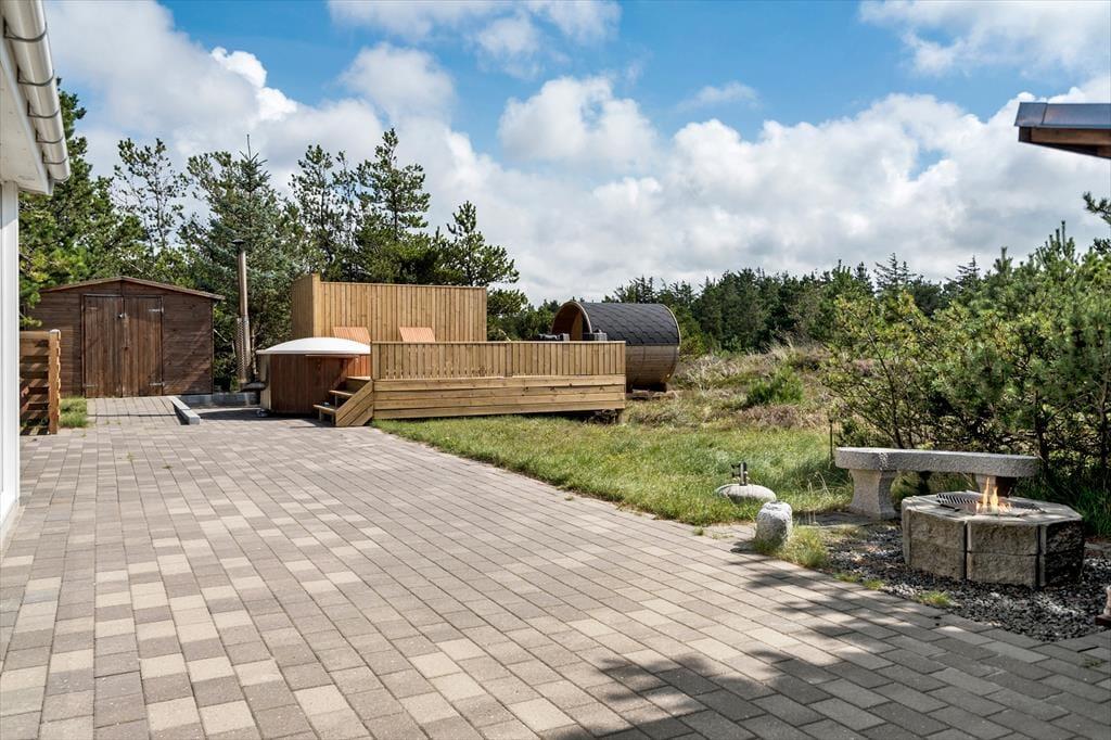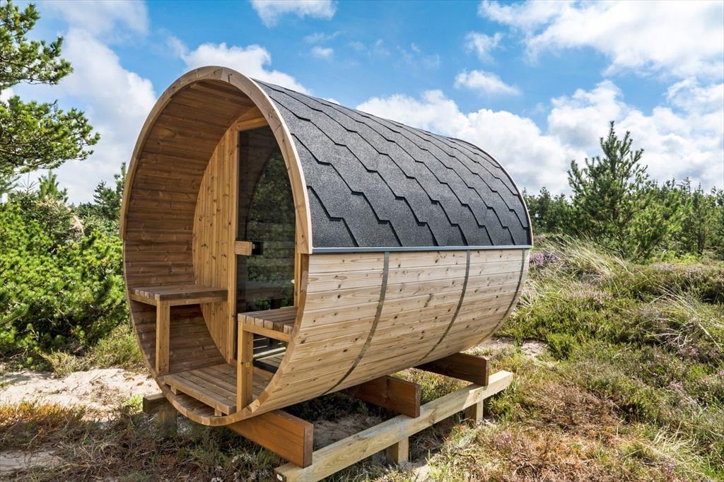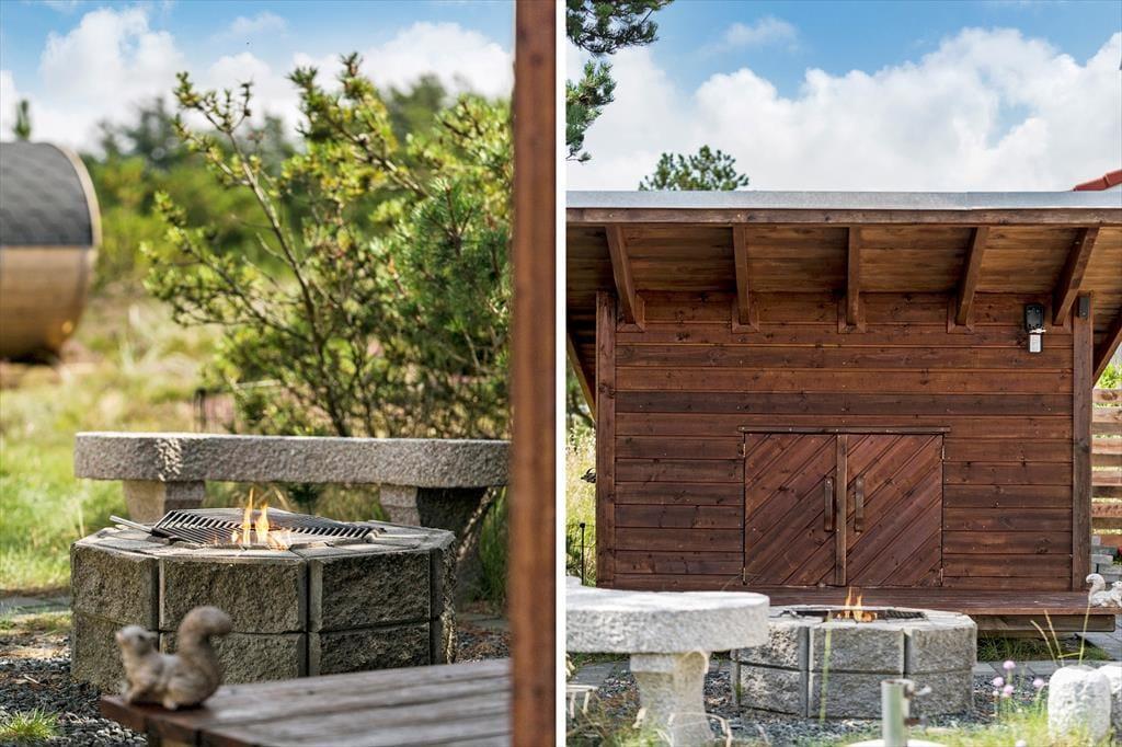 Udenfor åbner der sig en oase af muligheder, hvor du kan mærke den friske havbrise og nyde lyden af naturens stille hvisken. Her finder du plads til både leg og afslapning i den dejlige have, hvor sommerens sol skinner ned på en velplejet græsplæne, perfekt til udendørs aktiviteter og hyggelige stunder. Forestil dig, hvordan du på de kølige aftener kan tage et afslappende dyk i det varme vildmarksbad eller nyde en forfriskende sauna-session, mens tankerne flyver hen mod kommende eventyr. Uanset om du vælger at grille under åben himmel eller læne dig tilbage med en god bog, er udendørsarealet designet til at omfavne dig med naturens ro og skønhed. Du kan mærke den unikke forbindelse til naturen, mens du nyder den blide brise og lyden af fjerne fuglesang – en sand fornøjelse for alle sanser.