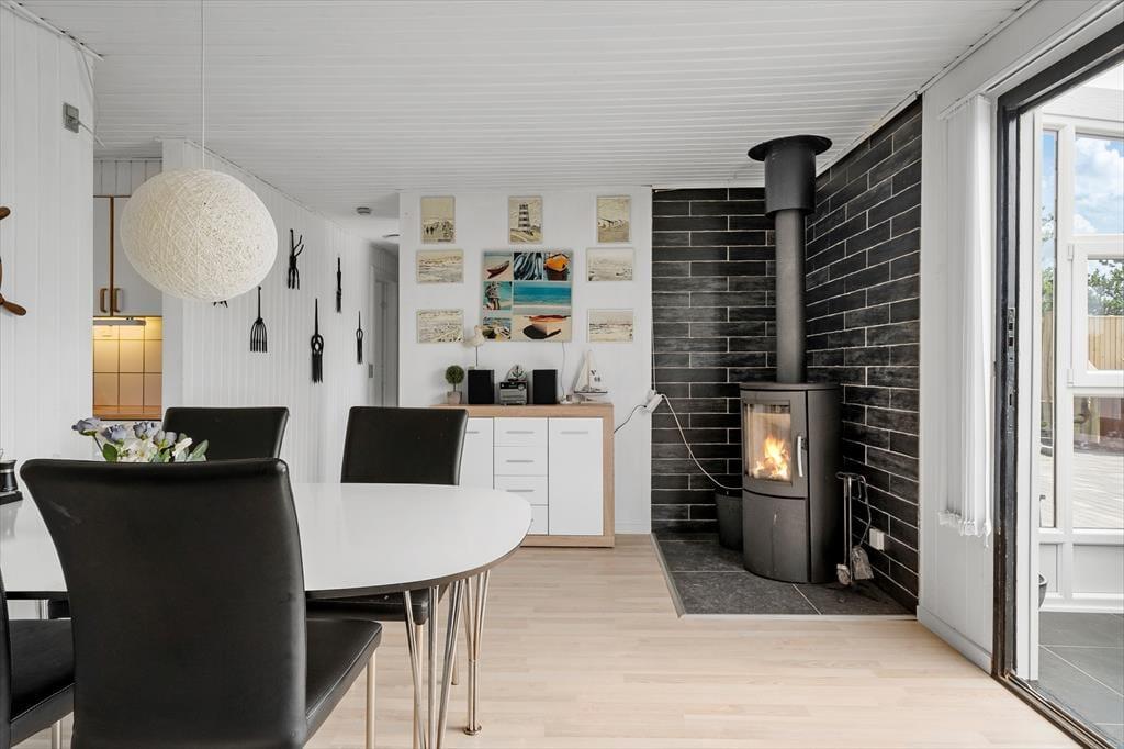 Træd indenfor i et sommerhus, der emmer af charme og varme, og lad dig omfavne af den velindrettede stue, hvor brændeovnens blide knitrende ild skaber en hyggelig og intim stemning. Den smagfulde indretning kombineret med lyse farver og moderne detaljer skaber en atmosfære, hvor du straks føler, at du er kommet hjem. Her er der plads til både afslapning og samvær, og med et design, der tager højde for både funktionalitet og æstetik, kan du forestille dig lange, behagelige aftener, hvor du samles om den varme ild. Der er skabt en indbydende ramme, der indbyder til at lade tankerne flyve, mens du nyder den ro, som kun et sommerhus i Vorupør kan give. Alle detaljer er nøje udvalgt for at skabe en ferieoplevelse, hvor komfort og hygge går hånd i hånd – et sted, hvor både krop og sjæl får mulighed for at slappe helt af.