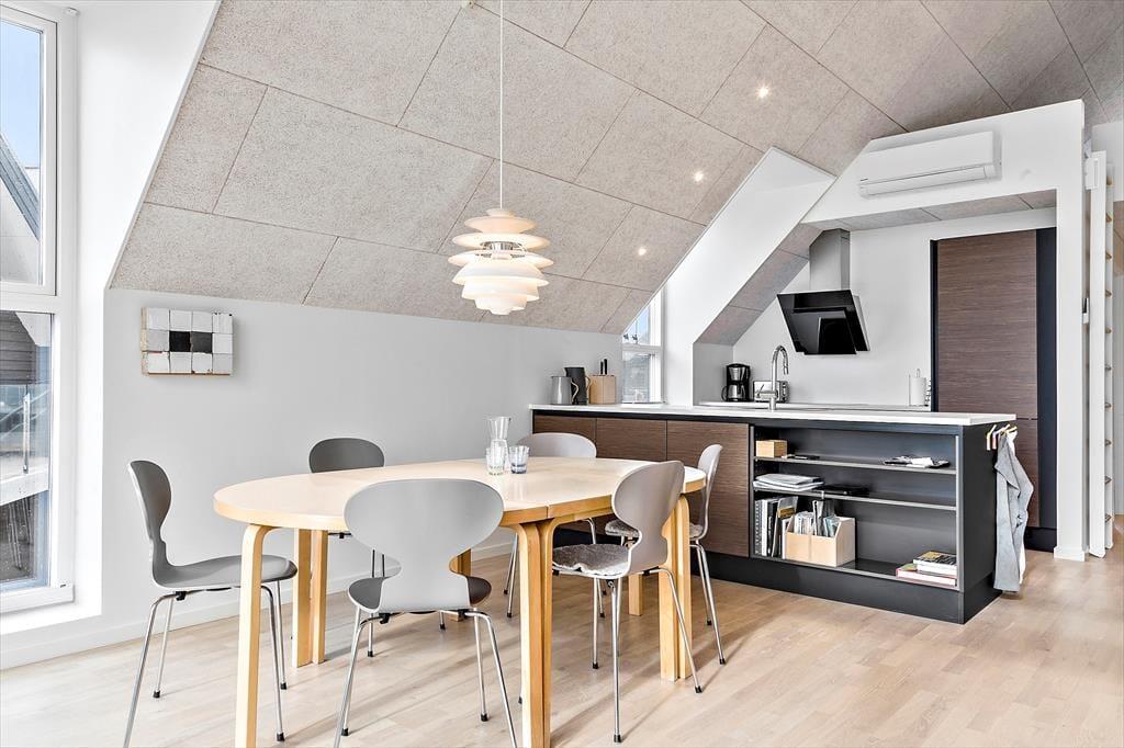 Træd indenfor i denne lækre ferielejlighed, hvor moderne elegance og hyggelig charme går hånd i hånd. Den stilfulde indretning indbyder til afslapning med nøje udvalgte møbler, der skaber en varm og indbydende atmosfære. Her mærkes detaljerne – fra de bløde tekstiler til de smukke farvekombinationer, der fremkalder en følelse af hjemlig tryghed. Indretningen er designet med omtanke for både æstetik og funktionalitet, så du nemt kan forestille dig lange, afslappende aftener foran et hyggeligt sofahjørne. Samtidig giver de store vinduer et smukt lysindfald, der kombineret med den betagende udsigt over havet, skaber et rum hvor både krop og sjæl kan finde ro. Her kan du mærke den subtile duft af havbrise, der stille kommer ind, og lade tankerne fare hen til solrige dage ved stranden.