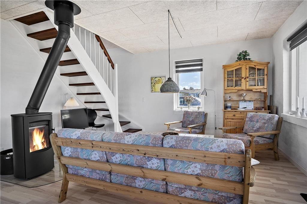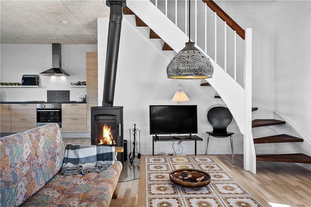Træd ind i dette indbydende sommerhus, hvor den klassiske indretning omfavner dig med en tidløs elegance og en varm atmosfære. Indendørs mødes du af en hyggelig stue, hvor den blide glød fra brændeovnen spreder en behagelig varme og skaber de perfekte rammer for lange, afslappede aftener med familie og venner. De fine detaljer i interiøret, fra de omhyggeligt udvalgte møbler til den charmerende indretning, formidler en følelse af hjemlig komfort og ro. Her kan du mærke, hvordan alle sanser vækkes – duften af brændende træ, det blide lys fra de store vinduer, der lukker den betagende havudsigt ind, og lyden af knitrende ild, som sammen danner rammen om uforglemmelige stunder. Hver krog af sommerhuset fortæller sin egen historie om tradition og kvalitet, og indbyder til at skabe nye minder i en afslappet og tryg atmosfære.