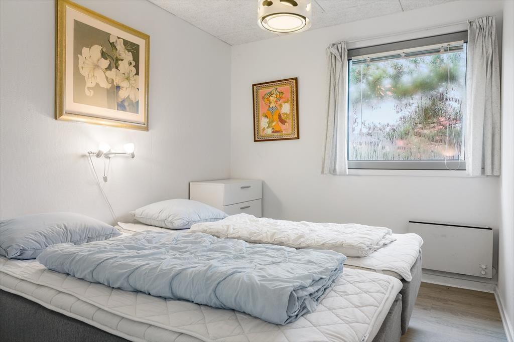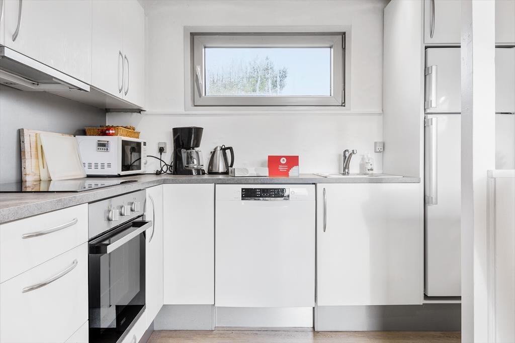 Når du træder ind i dette hyggelige sommerhus, mærker du med det samme en særlig stemning af ro og nærvær. Det separate stueområde er et oplagt sted at synke ned i sofaen med en god bog, mens dagens lys strømmer ind gennem vinduerne, og du fornemmer for alvor, at ferien er begyndt. På den anden side af huset ligger det lyse køkken, hvor brændeovnen er placeret. Her kan du forberede måltider i ro og mag, mens ilden knitrer i baggrunden og spreder en rar varme til hele rummet. Den klassiske indretning er gennemført og bidrager til en dejligt afslappet atmosfære, hvor man instinktivt finder ro og slipper hverdagens travlhed. Sommerhuset er ideelt for jer, der ønsker at trække stikket og nyde hyggelige stunder sammen med familien eller gode venner – og både børn og husdyr kan naturligvis være med til at gøre ferien fuldendt.