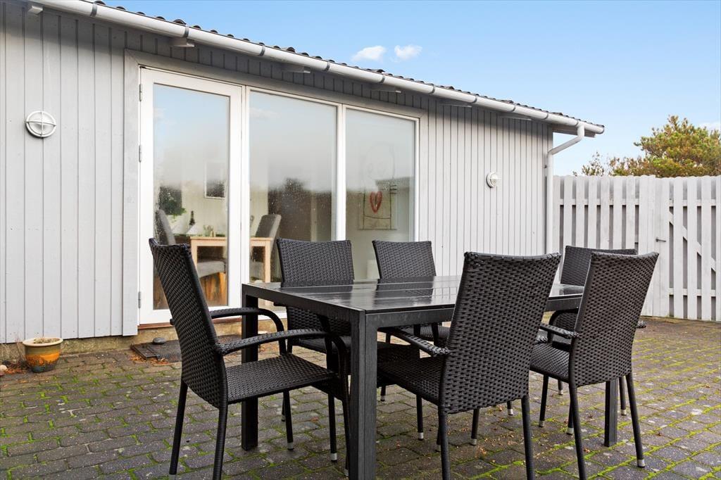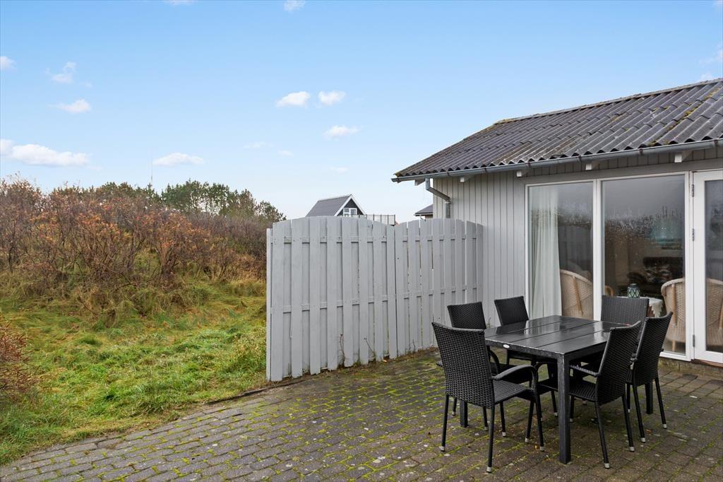 Med en sydvendt terrasse lige uden for døren er det nemt at rykke fællesskabet ud i det fri. Her kan du nyde morgenens første kop kaffe i solen, mens du mærker den friske havluft og hører fuglene hilse dagen velkommen. I løbet af dagen kan terrassen blive centrum for både lange frokoster og spændende grillmiddage, hvor duften af nygrillede retter blander sig med en mild brise fra Vesterhavet. For børnene er der god plads til at lege på den omkringliggende naturgrund, mens de voksne kan tage et roligt øjeblik i en liggestol eller samle sig om kortspil ved havebordet. Og hvis vejret skulle drille, er det altid nemt at søge indenfor i varmen fra brændeovnen og fortsætte hyggen der.