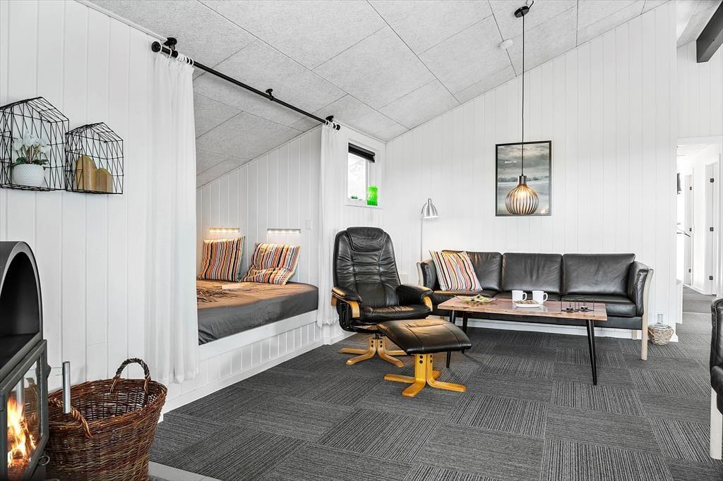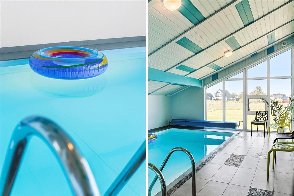 Træd ind i et lyst og indbydende sommerhus, der byder på masser af plads til at udfolde sig i ferieugen. Allerede ved første øjekast mærker du den smagfulde indretning, der skaber en behagelig og personlig stemning. De store vinduespartier inviterer lyset indenfor og lader dig nyde fornemmelsen af at være tæt på naturen, selv når du sidder inden døre. Midtpunktet i opholdsrummet er den knitrende brændeovn, der med sin varme skaber den helt rette hygge på kølige aftener, mens du måske fordyber dig i en god bog eller sætter spil frem til en sjov aften med familien. Når børnene har brug for lidt ekstra aktivitet, kan de plaske løs i den indendørs pool, der giver mulighed for vandleg og et friskt dyp uanset årstid. Og er I flere generationer afsted eller vennepar på tur, er der rig mulighed for, at alle kan finde sig til rette i de forskellige afkroge af huset, samtidig med at I samles til fælles stunder i de hyggelige opholdsområder.
