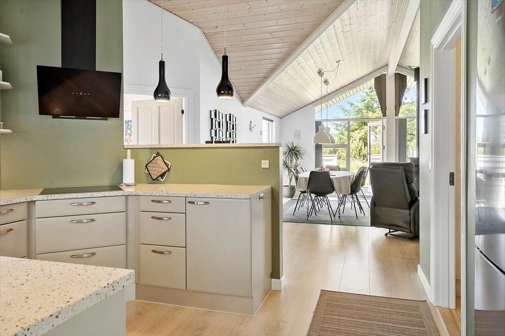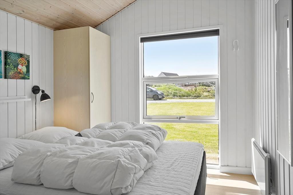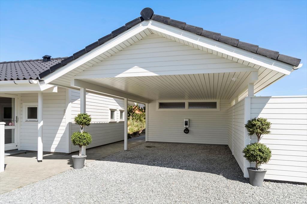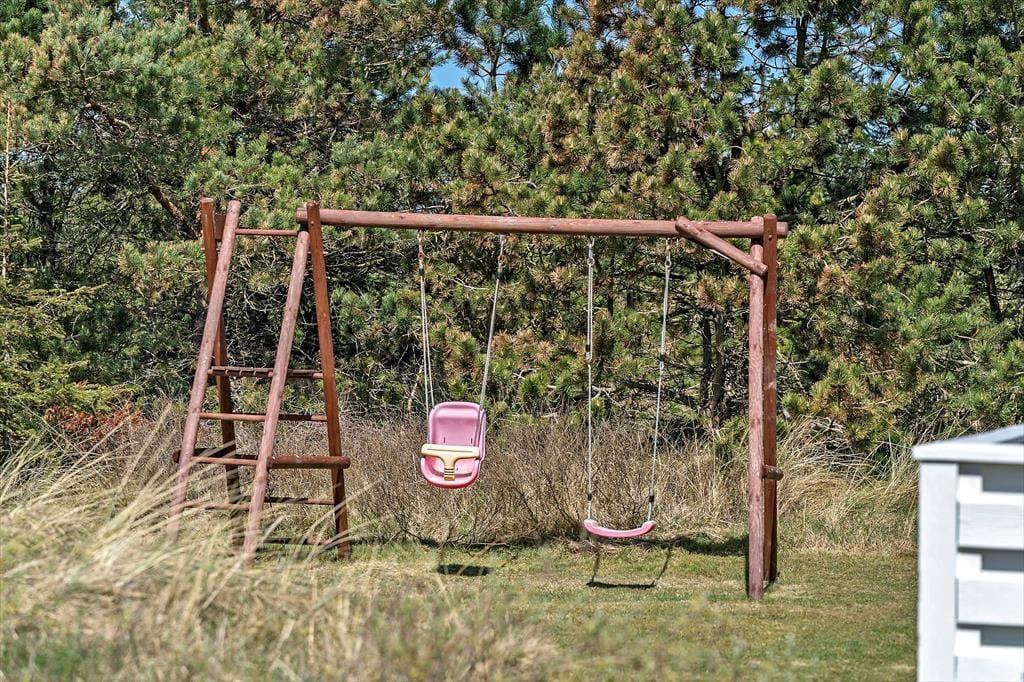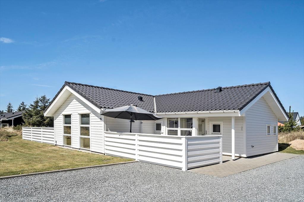 Selv om det indre af sommerhuset opfordrer til hygge og afslapning, er udelivet mindst lige så fristende. Fra stuen kan du træde direkte ud på en skøn terrasse, hvor frokostbordet i sommersolen kan blive dagens højdepunkt, og hvor du kan lade dig omfavne af den friske, vestjyske havluft. De omkringliggende klitlandskaber og den rolige atmosfære vidner om, at du her befinder dig i et af Danmarks mest naturskønne områder. Haven indbyder til leg og latter; mens børnene boltrer sig i græsset, kan de voksne nyde en stille stund med en kop kaffe og lade tankerne vandre. Med en enkel gang- eller cykeltur når du lynhurtigt ud i klitterne, hvor du kan lade vinden i håret og smagen af salt på læberne minde dig om, hvor tæt du er på det brusende Vesterhav. Når aftenroen sænker sig, er terrassen det perfekte sted at samle alle til et grillmåltid i solnedgangens bløde skær, inden I trækker jer tilbage til varmen indendørs.