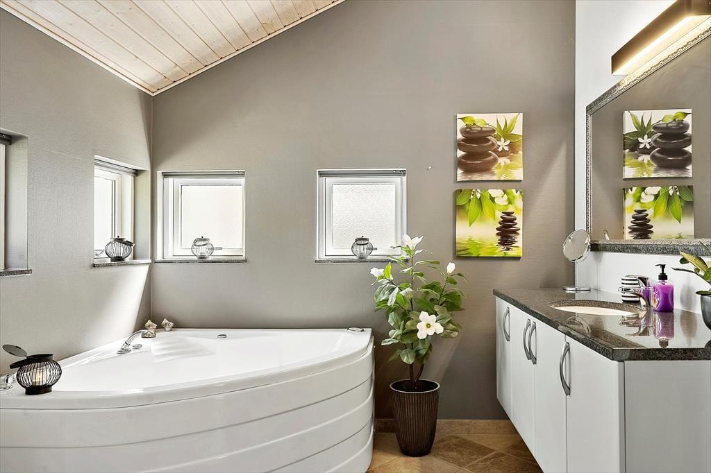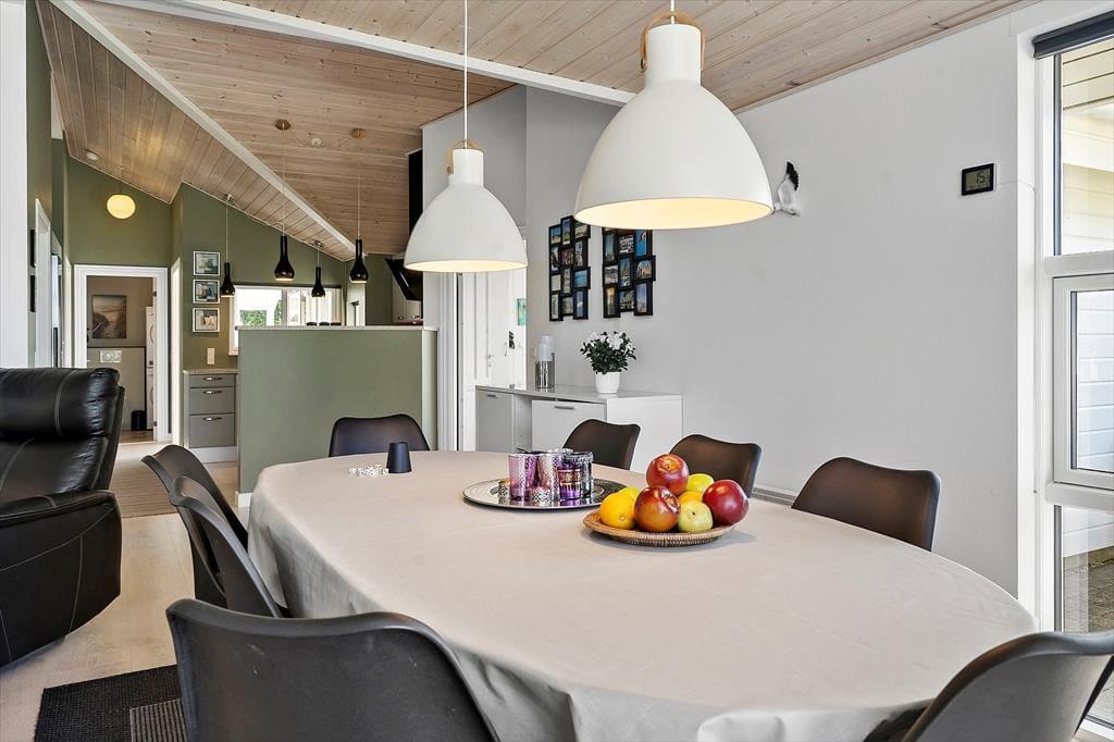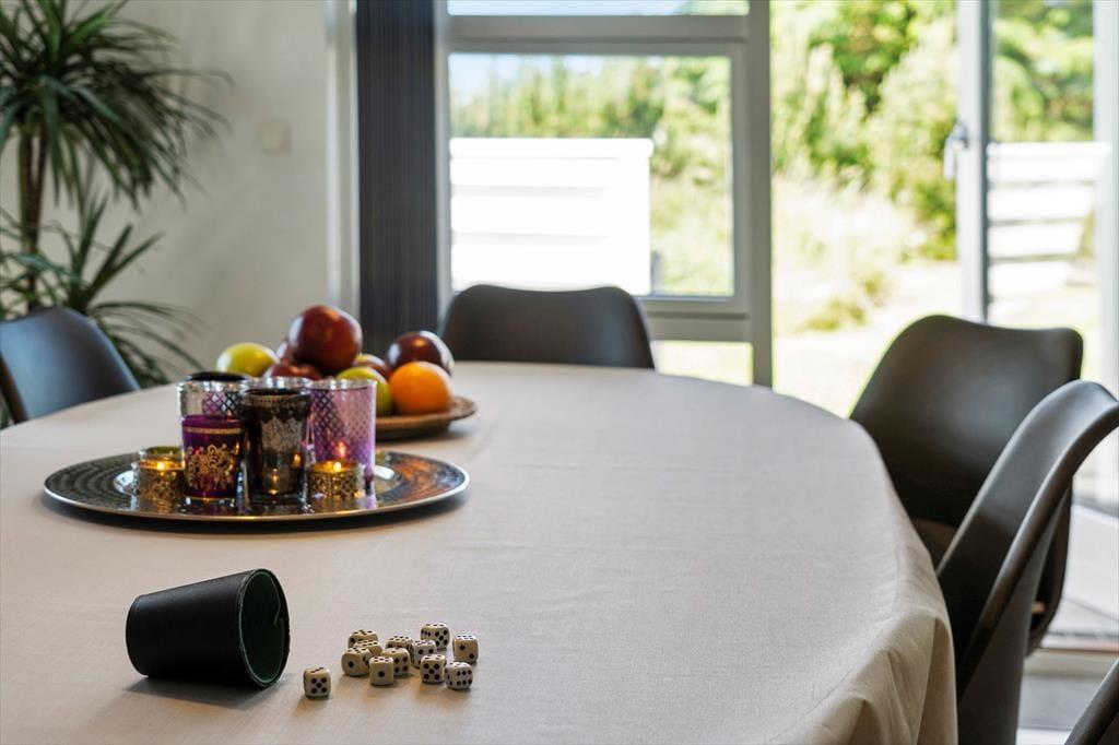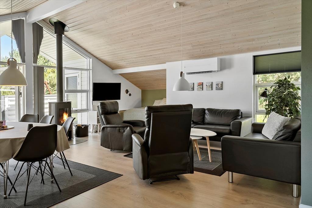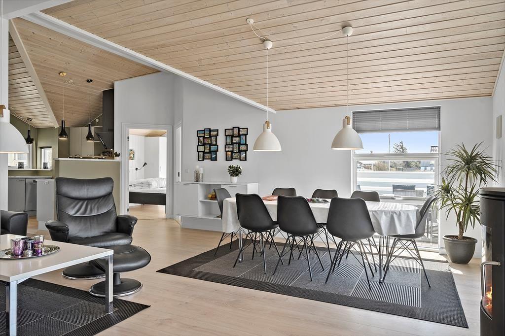 Allerede når du træder ind i dette indbydende sommerhus, fornemmer du den hyggelige indretning, der sætter rammen om en afslappet og komfortabel ferie. Et lyst opholdsområde danner hjertet i huset, og den knitrende brændeovn sørger for, at selv de kølige dage og aftener bliver lune og stemningsfulde. Forestil dig at synke ned i en blød lænestol med en god bog, mens ilden knitrer i baggrunden, og du mærker den ro, der kun findes på sådanne feriedage ved Vesterhavet. Det veludstyrede badeværelse byder på en spaoplevelse ud over det sædvanlige. Her kan du sætte dig til rette i det indbydende spabad og lade de varme bobler omslutte kroppen, mens du lader hverdagens travlhed glide i baggrunden. Når du trænger til lidt ekstra selvforkælelse, kan du også vælge at lade varmen fra saunaen omfavne dig og løsne op for hver en spænding i kroppen. Husets rummelighed giver luft og frihed til, at hele familien kan være samlet – hvad end det drejer sig om fælles madlavning i køkkenhjørnet eller afslapning med brætspil omkring spisebordet. Her er plads til, at seks feriegæster kan nyde ferien side om side i behagelige rammer, der oser af afslappet atmosfære og nærvær.