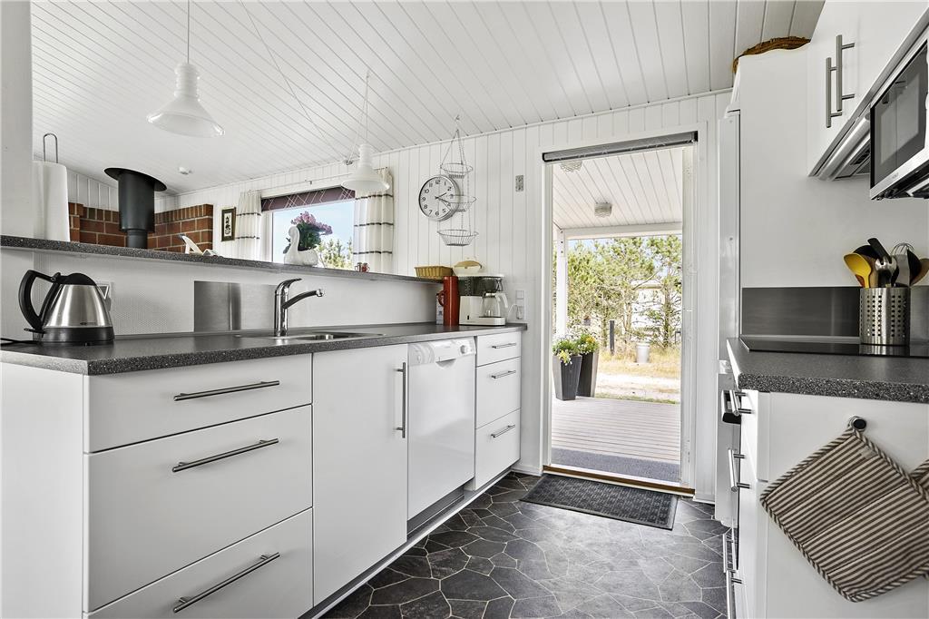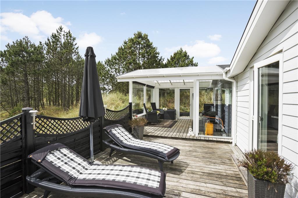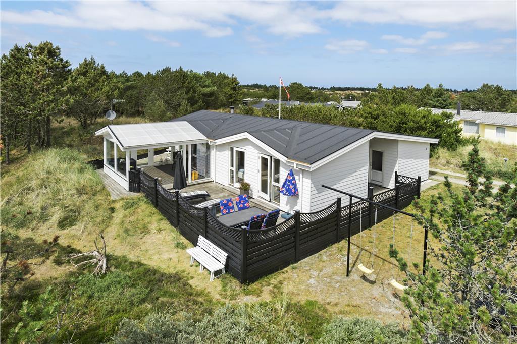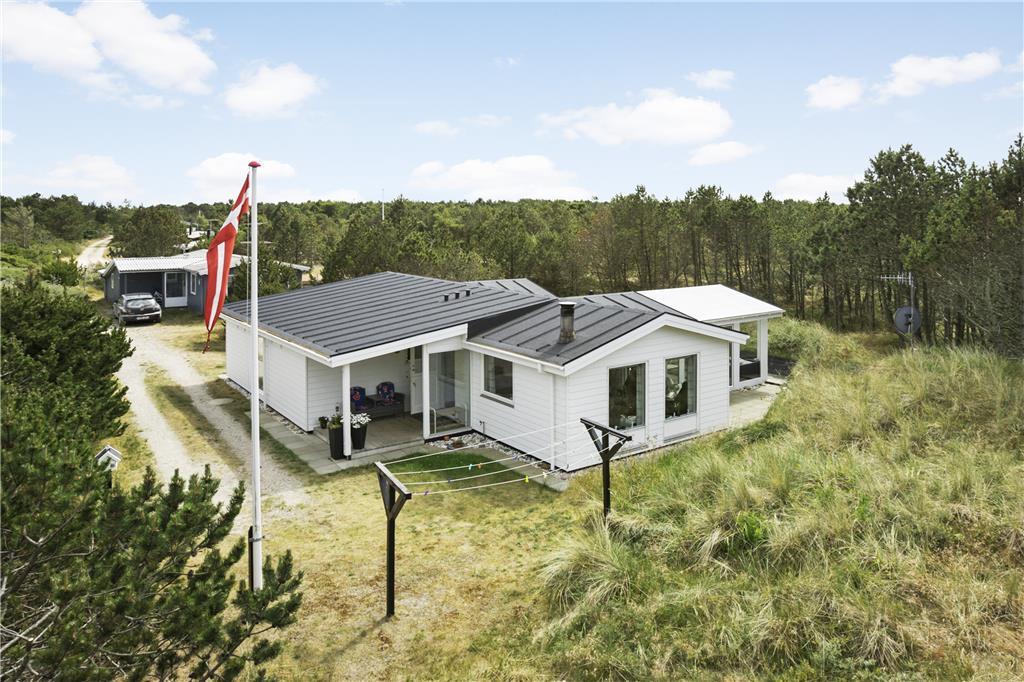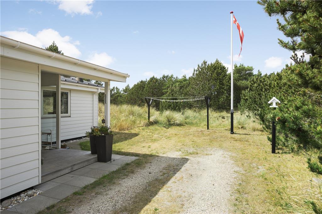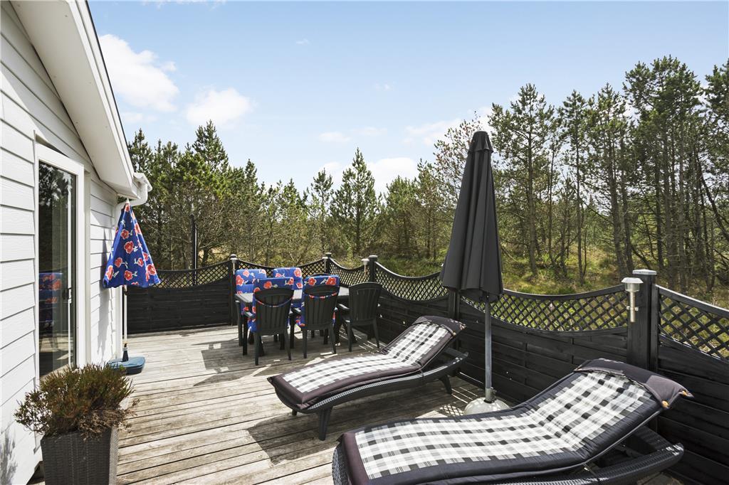 Udenfor møder du en velholdt og indbydende have, der er som skabt til både afslapning og leg. Den rummelige terrasse giver rig mulighed for at nyde solen dagen lang, mens I for eksempel tænder op i grillen og tilbereder lækker aftensmad under åben himmel. Det omkringliggende område er roligt, og man kan næsten høre vinden suse i marehalmen, mens fuglene kvidrer i baggrunden. Her er plads til både store og små feriegæster, der kan løbe barfodede rundt i græsset og lege tagfat, eller fordybe sig i en god bog under parasollen. Når aftenhyggen kalder, er det nemt at rykke indendørs og lade brændeovnen sørge for den sidste lune stemning, inden I lader jer synke ned i de bløde møbler. Naturen tæt på Vorupør gør desuden, at I hele tiden har fornemmelsen af at være omgivet af frisk luft, smukke landskaber og Vesterhavets særlige charme – og alt dette begynder lige uden for døren.