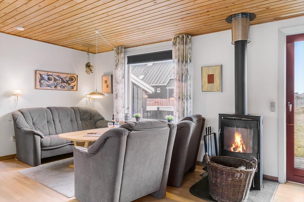 Træd indenfor i sommerhuset på Nordsøvej 100, hvor du straks mærker den varme og indbydende atmosfære. Den ældre stil kombineret med en charmerende indretning skaber en stemning, hvor fortid og nutid mødes. I stuen indbyder en hyggelig brændeovn til lange, stille aftener, hvor flammernes dans og den blide varme skaber en intim stemning for både små og store. De indrettede rum er smukt bevaret med detaljer, der vækker minder om gamle dage, og samtidig er der plads til, at alle kan føle sig hjemme. Her mærker du den autentiske fornemmelse af et velkendt hjem, hvor alt er tilrettelagt for at fremkalde ro og nærvær, og hvor alle husdyr er hjerteligt velkomne. Stemningen understøttes af de naturlige materialer og de bløde farver, som tilsammen bidrager til en følelse af ubekymret hygge, som kun et ægte træsommerhus kan tilbyde.
