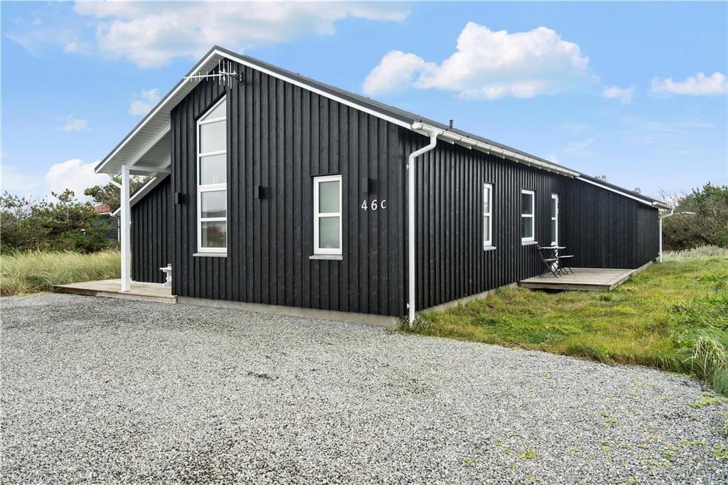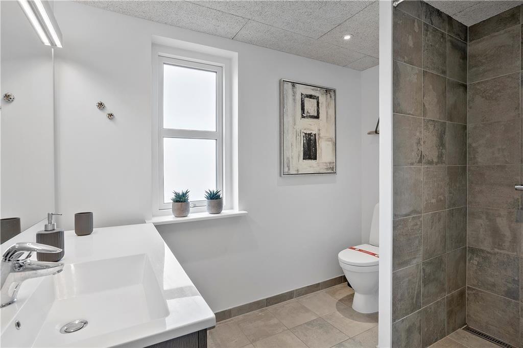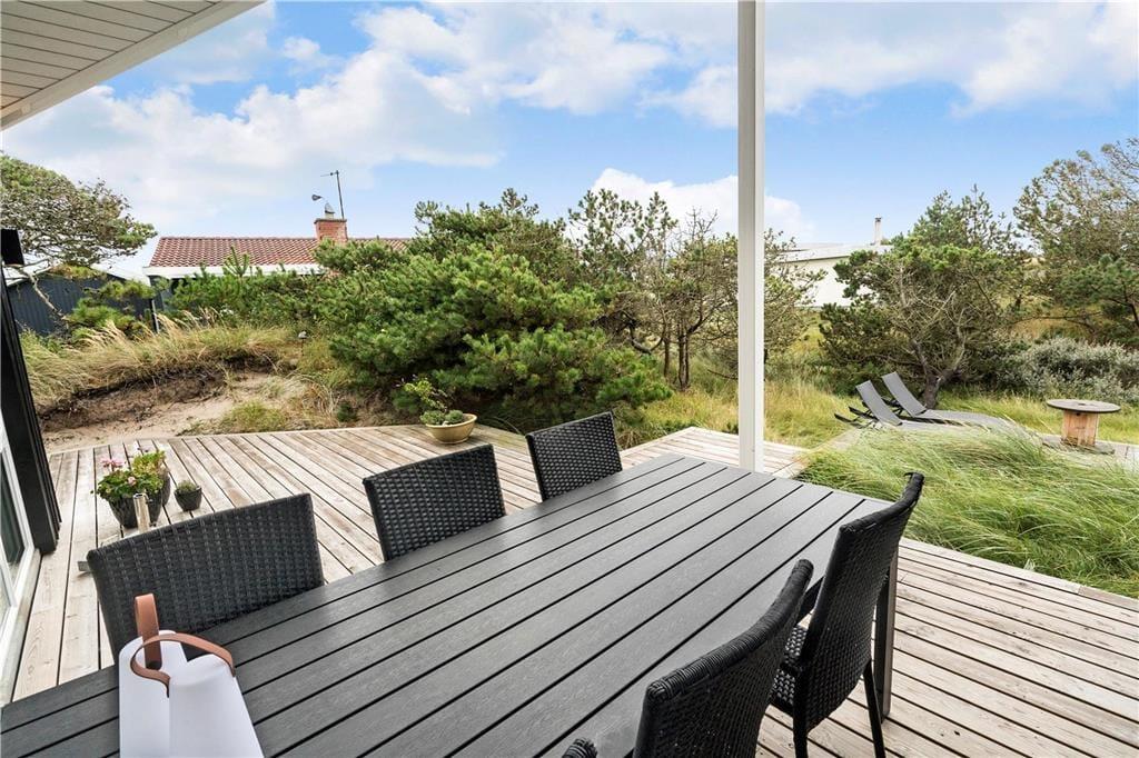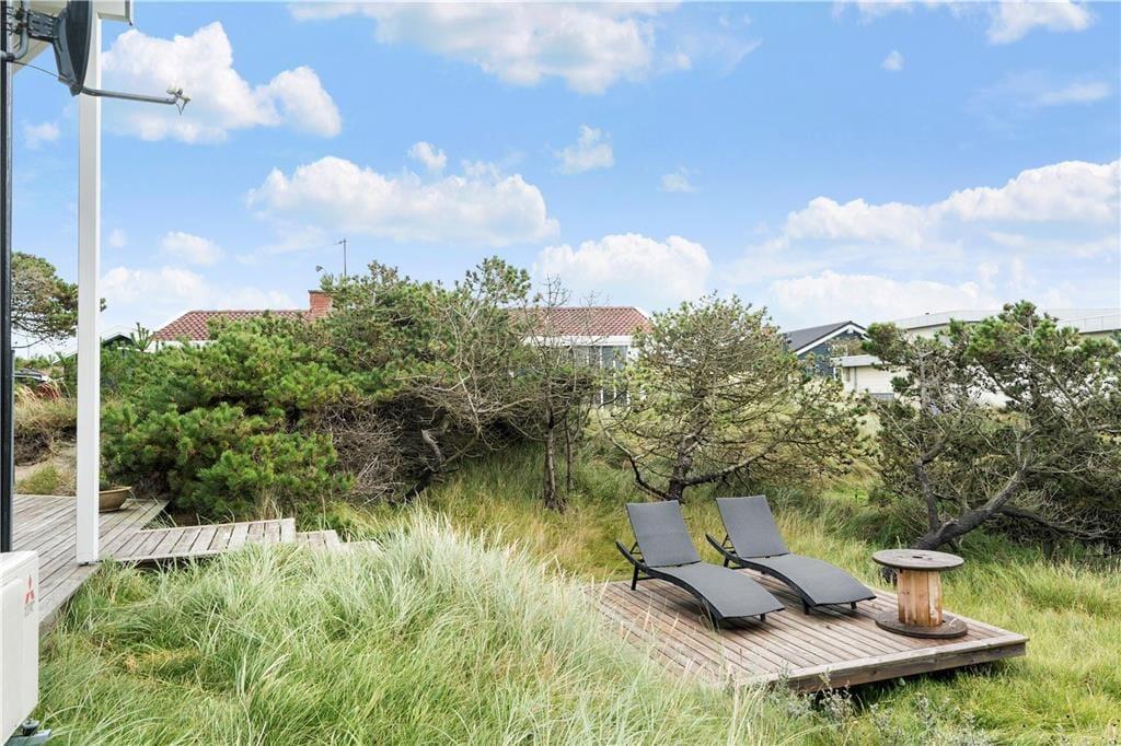 Udenfor venter en fortryllende oase, hvor den lækre terrasse danner rammen om mange dejlige stunder. Forestil dig at starte dagen med en frisk kop kaffe, mens du nyder den klare morgenluft og lyden af havets blide brusen i det fjerne. Terrassen byder på både solbeskinnede områder til afslapning og skyggefulde kroge, hvor du kan fordybe dig i en god bog eller nyde et afslappet måltid udendørs. Det åbne rum inviterer til både leg og afslapning – her er der rig mulighed for at mærke friheden og naturens nærvær, mens du nyder udsigten over den frodige have og de charmerende omgivelser. Det stilfulde udendørsområde er skabt til at give plads til både rolige stunder og livlige sammenkomster, så du kan samle venner og familie omkring et lækkert måltid i det fri.
