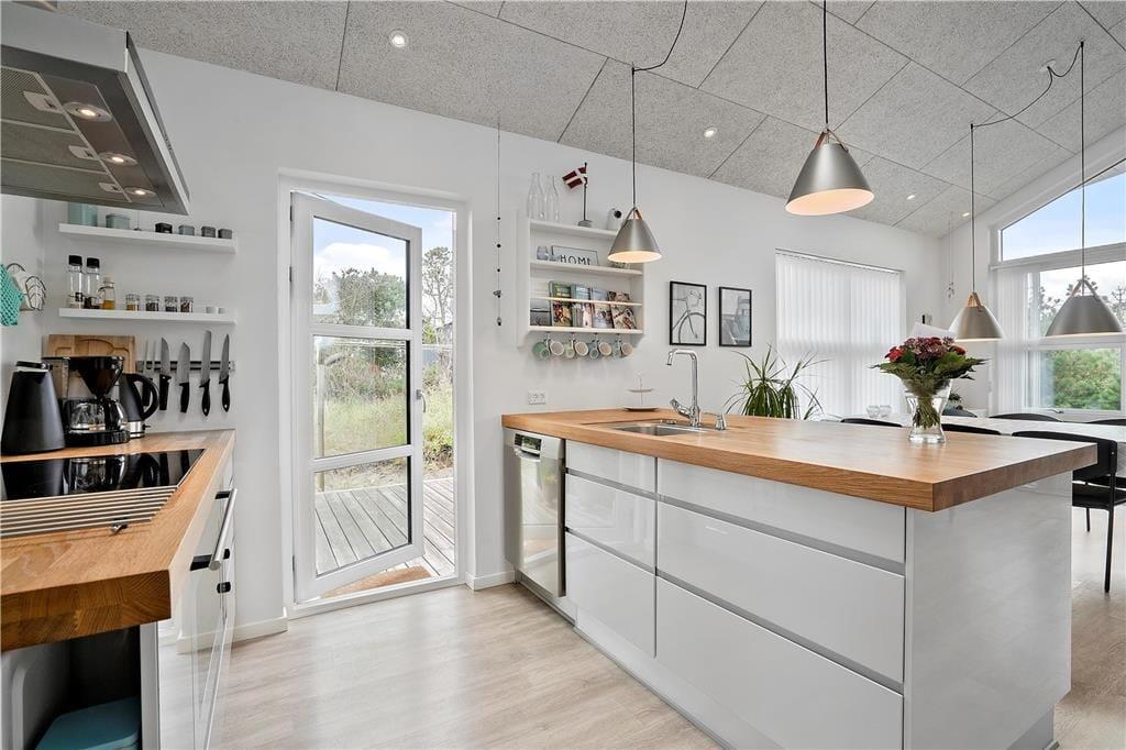 Træd ind i et sommerhus, hvor stilfuld indretning og sans for detaljen mødes for at skabe en atmosfære, du sent vil glemme. Den lækre og moderne indretning byder på rummelige opholdsrum, hvor du kan mærke den varme velkomst allerede fra første skridt. Med nøje udvalgte materialer og et elegant design bliver du mødt af et hjem, der indbyder til hyggelige aftener, om du så nyder et glas vin i den lyse stue eller samles omkring et fælles måltid i den moderne spisestue. Her er der tænkt på alle sanser – fra de bløde tekstiler og subtile farvevalg til duften af frisklavet kaffe om morgenen. Den indrettede atmosfære kombinerer komfort og modernitet på en måde, der fremkalder følelsen af et hjem væk fra hjemmet, og det hele prydes af et luksuriøst præg, der sikrer, at hvert øjeblik bliver til en uforglemmelig oplevelse.