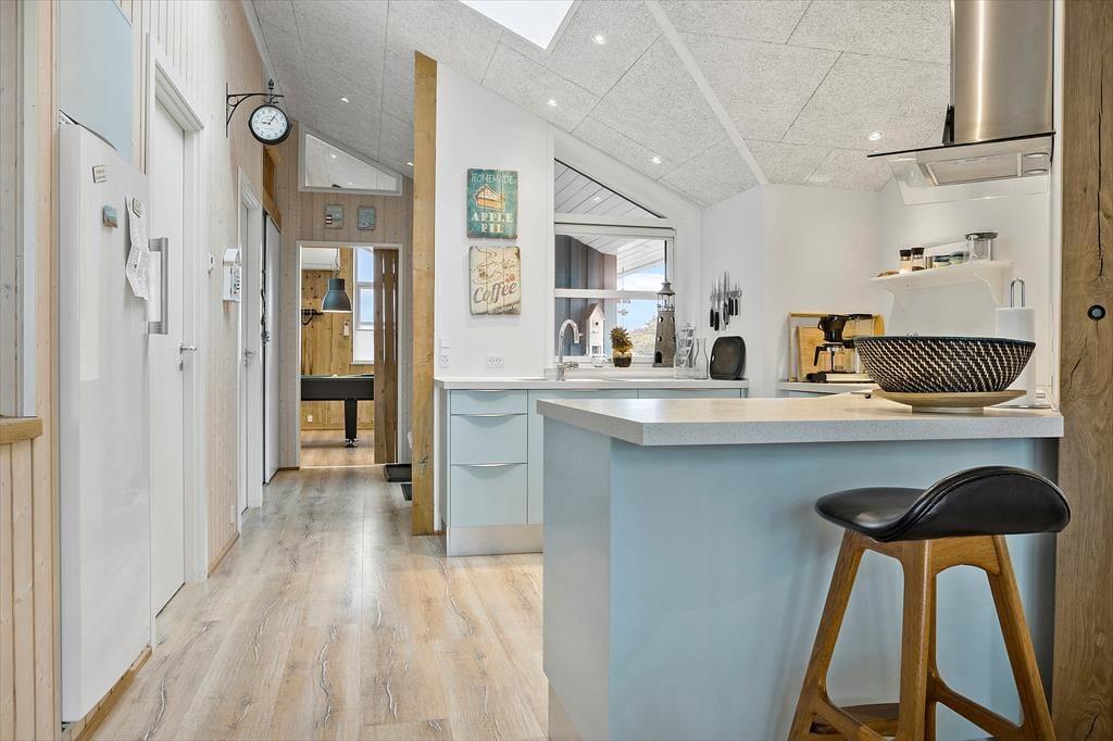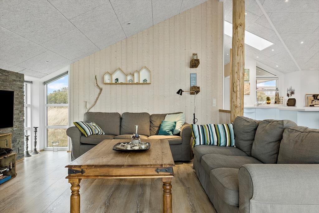 Træd ind i en verden af moderne elegance og gennemført hygge, hvor sommerhusets luksuriøse interiør omfavner dig med sin varme atmosfære og nøje udvalgte detaljer. Den smukke indretning er skabt med sans for både stil og komfort, hvilket gør hvert rum til et unikt tilflugtssted for afslapning. Her finder du en indbydende stue med store vinduer, der lader lyset danse frit og skaber en naturlig forbindelse til den ydre verden. De velovervejede materialer og farver bidrager til en harmonisk helhed, der vækker sanserne og inviterer til lange, hyggelige aftener med familien. Det er et sted, hvor hver krog udstråler kvalitet og omtanke, og hvor du med det samme føler dig hjemme.
