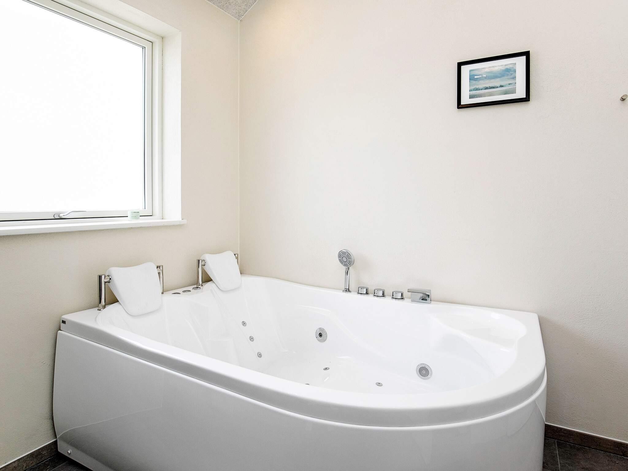 Dette lyse og imødekommende sommerhus med spabad beliggende ved Vorupør byder på masser af spændende detaljer. Huset er meget velindrettet med moderne møblering, gratis internet og stort aktivitetsrum. Der er fire soveværelser og en stor hems. To badeværelser med brus og gulvvarme, det ene også med spabad. Der er vaskemaskine og tørretumbler. Det veludstyrede køkken har bl.a. opvaskemaskine og keramisk komfur. Huset opvarmes af varmepumpe. Udlejes ikke til ungdomsgrupper.