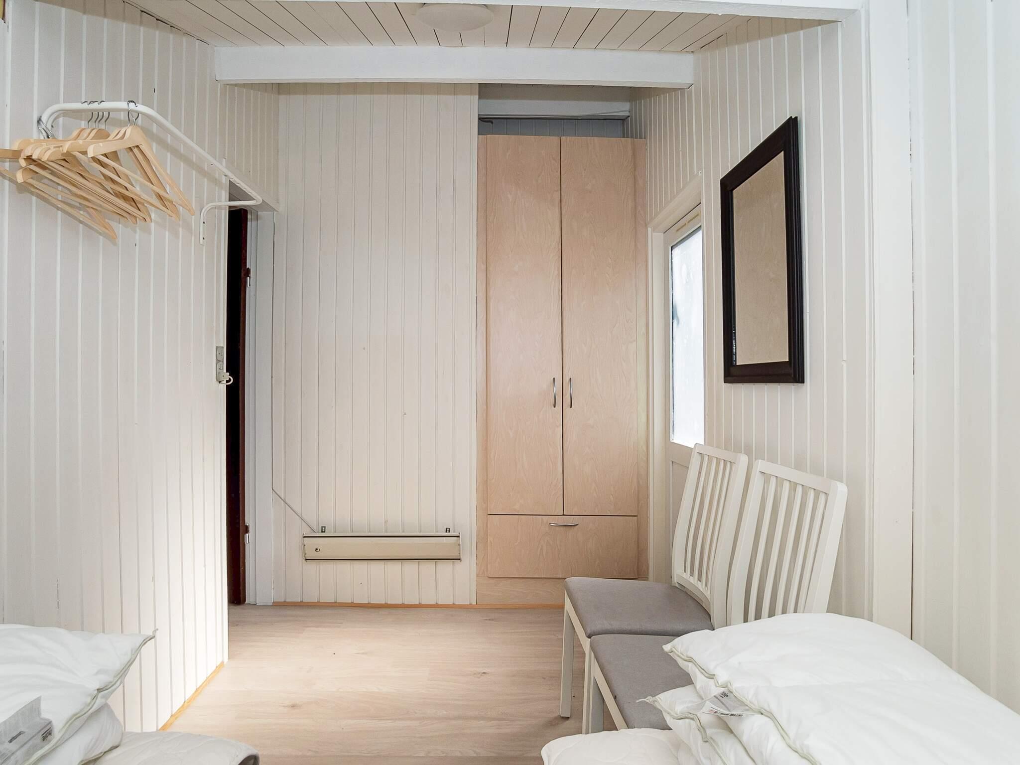 Indenfor fungerer det åbne køkken og opholdsstue som husets hjerte, indrettet med spiseplads og hyggelig opholdsstue. Køkkenet er udstyret med keramisk kogeplade, emhætte og køleskab, mens yderligere faciliteter såsom opvaskemaskine, vaskemaskine og fryser findes i bryggerset, som er tilgængeligt fra den glaserede veranda. De to soveværelser er lyse og indbydende, indrettet med to enkeltsenge på 80 x 200 cm i det ene værelse og en køjeseng med to køjer i det andet.