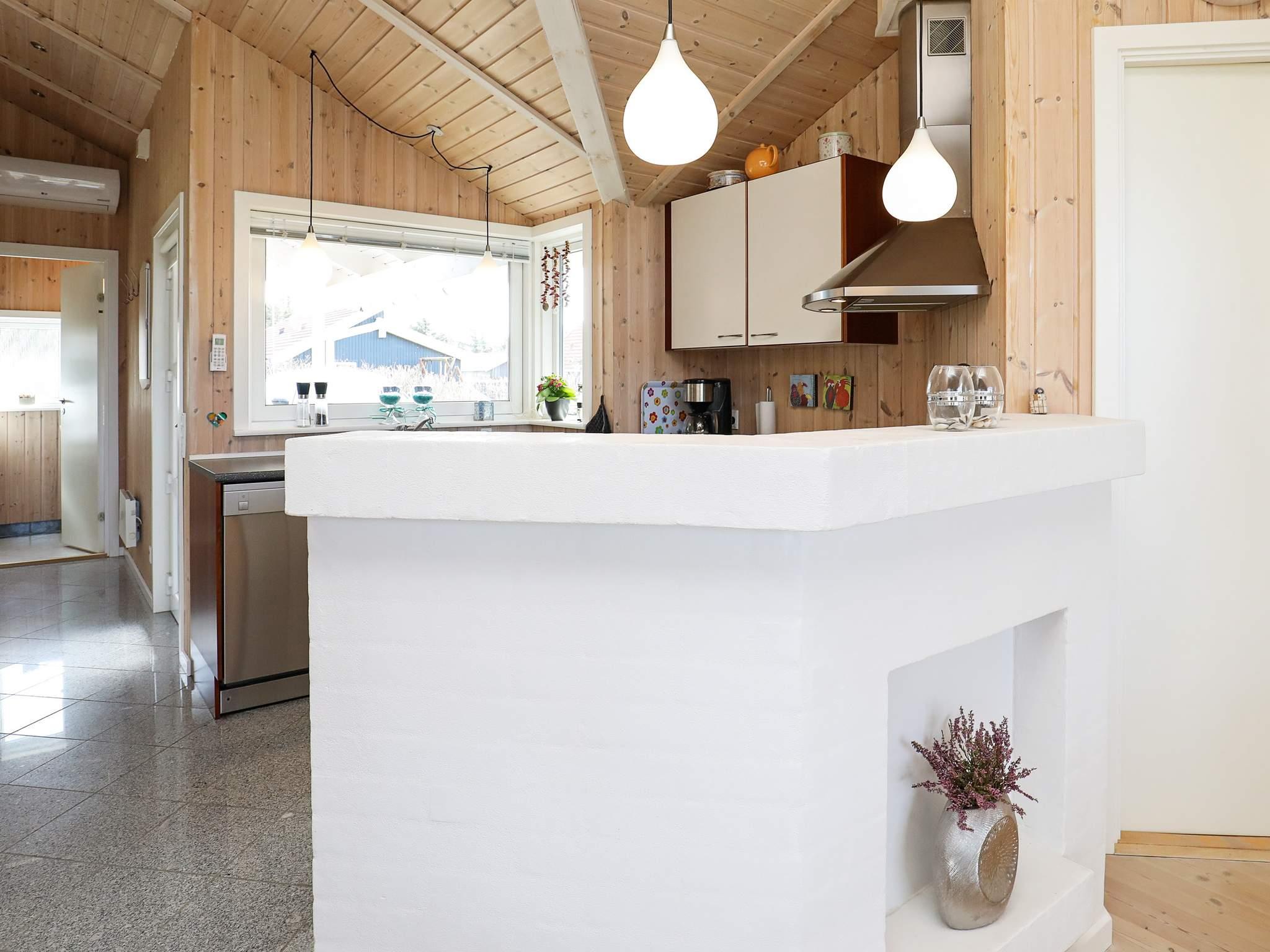 Lyst og imødekommende sommerhus med spabad og sauna samt masser af spændende detaljer beliggende på god naturgrund ved Vorupør. Huset er meget velindrettet med fire soveværelser, hvoraf de to er med dobbeltsenge, et med to enkeltsenge og et med en enkeltseng. Huset er moderne møbleret og udstyret med brændeovn, tv med danske og tyske programmer, stereoanlæg med cd-afspiller, dvd-afspiller samt gratis, trådløst internet. Badeværelse med gulvvarme, spabad og sauna og gæstetoilet med håndvask. Der er vaskemaskine og tørretumbler. Det veludstyrede køkken har bl.a. opvaskemaskine, mikroovn, keramiske kogeplader og køle-frys. Til huset er der gode øst- og vestvendte terrasser hele vejen rundt om huset. Der er sandkasse. Huset er centralt placeret med kort afstand til både butikker og til stranden. Udlejes ikke til ungdomsgrupper.