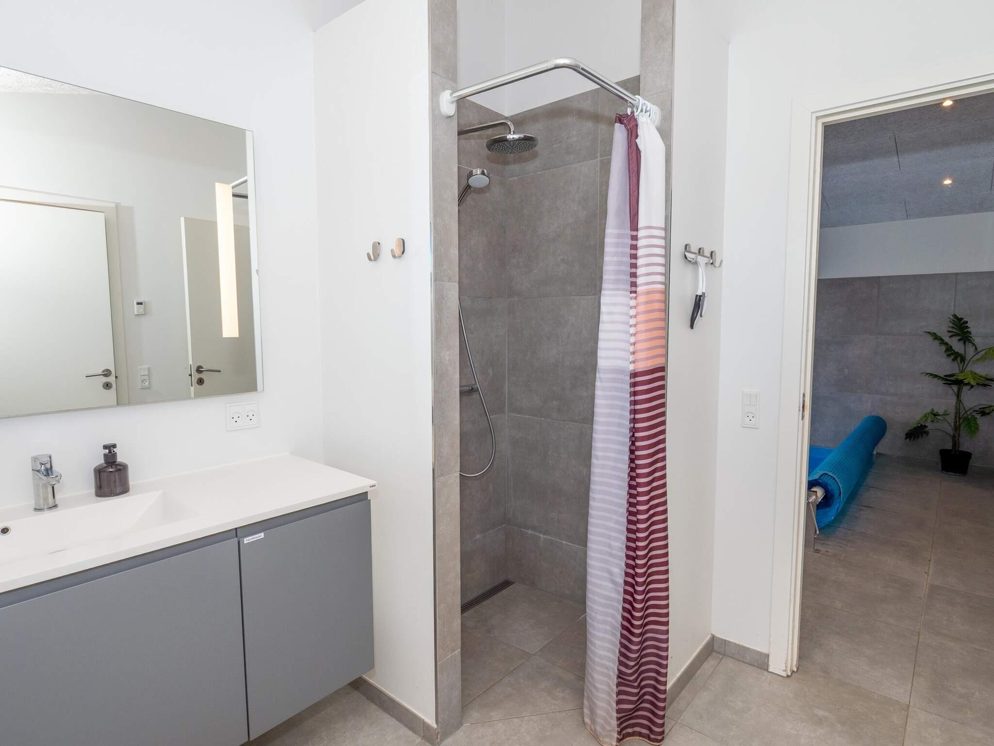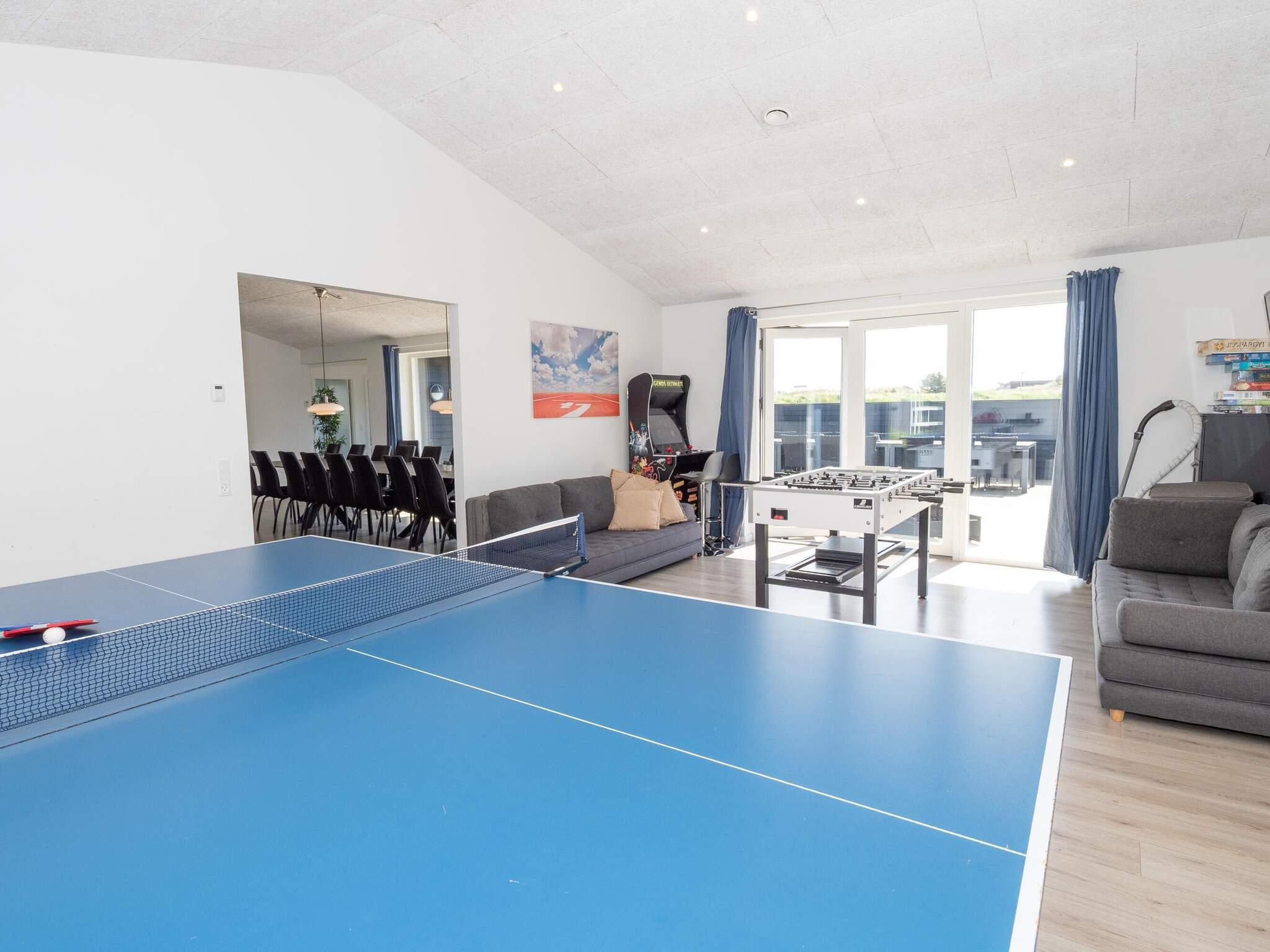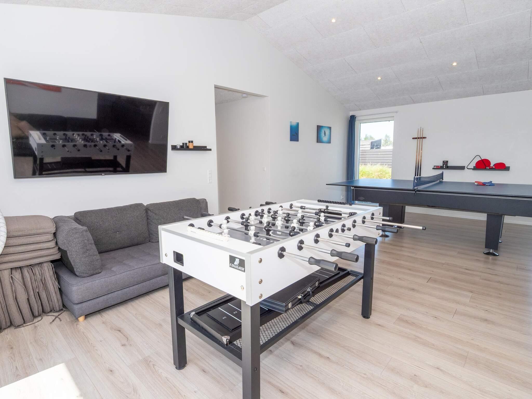 På den ene side af dette findes aktivitetsrummet med billard og bordfodbold, badeværelse og 3 af husets soveværelser. I den anden ende har I poolen og husets anden afdeling med opholdsrum og de andre 3 soveværelser.