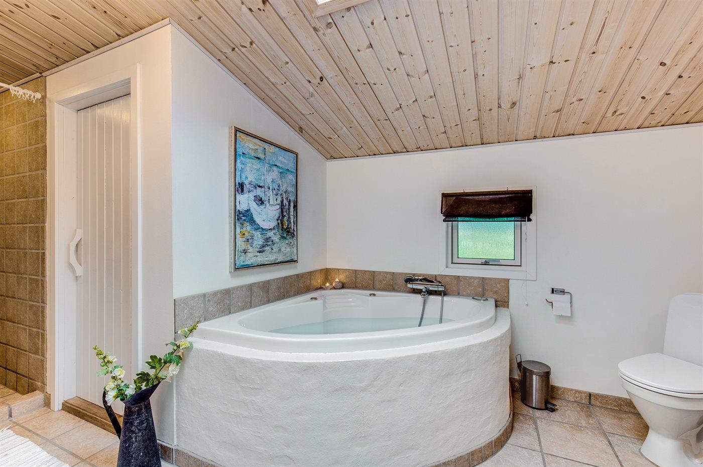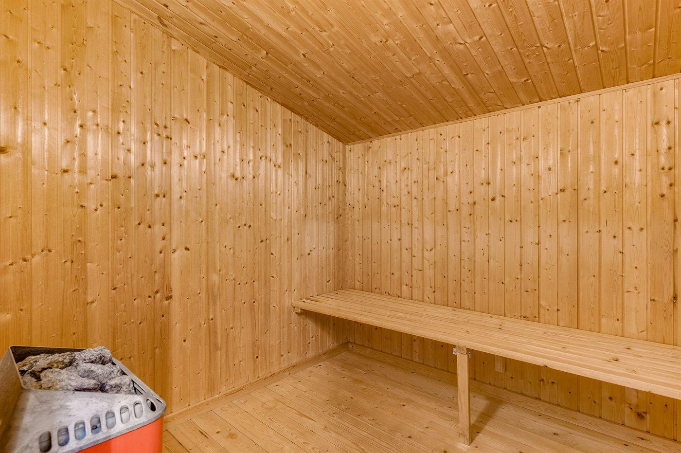 Der er 1 badeværelse med bruseniche og 2 toiletter, heraf 1 gæstetoilet. Der er gulvvarme på 1 badeværelse. I saunaen er der mulighed for afslapning.