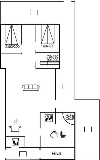 Der er i alt 3 soveværelser. Sovepladserne fordeler sig på: 4 sovepladser i dobbeltsenge. 2 sovepladser i køjeseng.