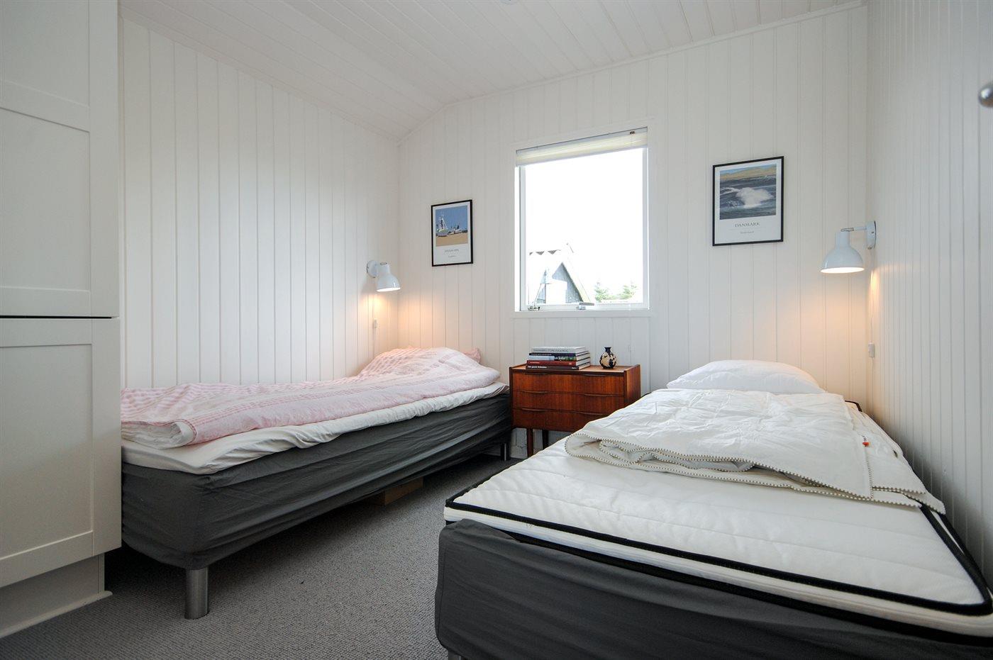 Der er i alt 2 soveværelser. Sovepladserne fordeler sig på: 2 sovepladser i dobbeltseng. 2 sovepladser i enkeltsenge.
