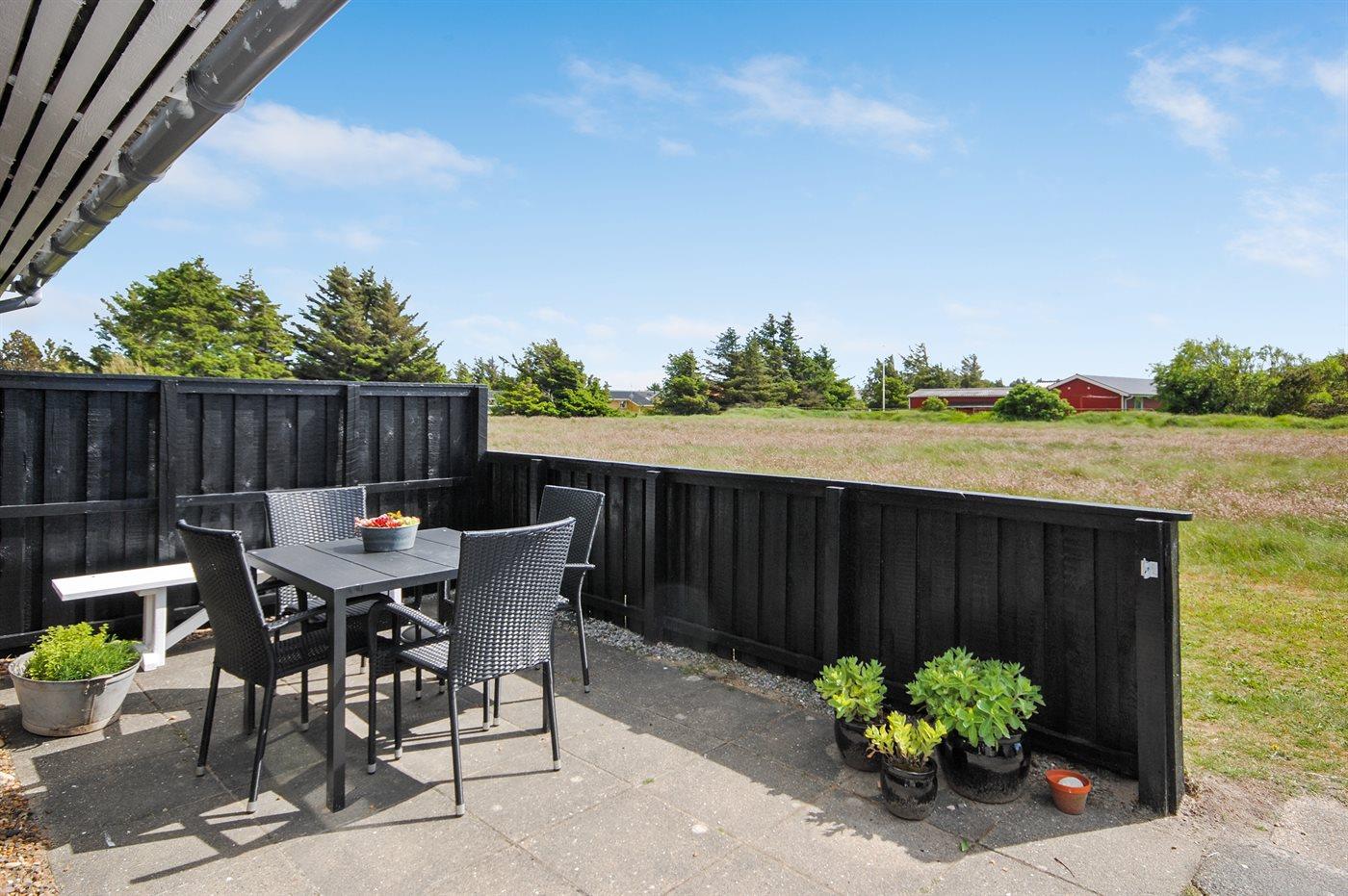 Ferieboligen er beliggende på en 750 m² stor naturgrund. Der er 900 m til havet. Nærmeste forretning er beliggende i en afstand af 500 m. Til ferieboligen hører 18 m² terrasseareal. Grill til rådighed. Parkering ved ferieboligen.