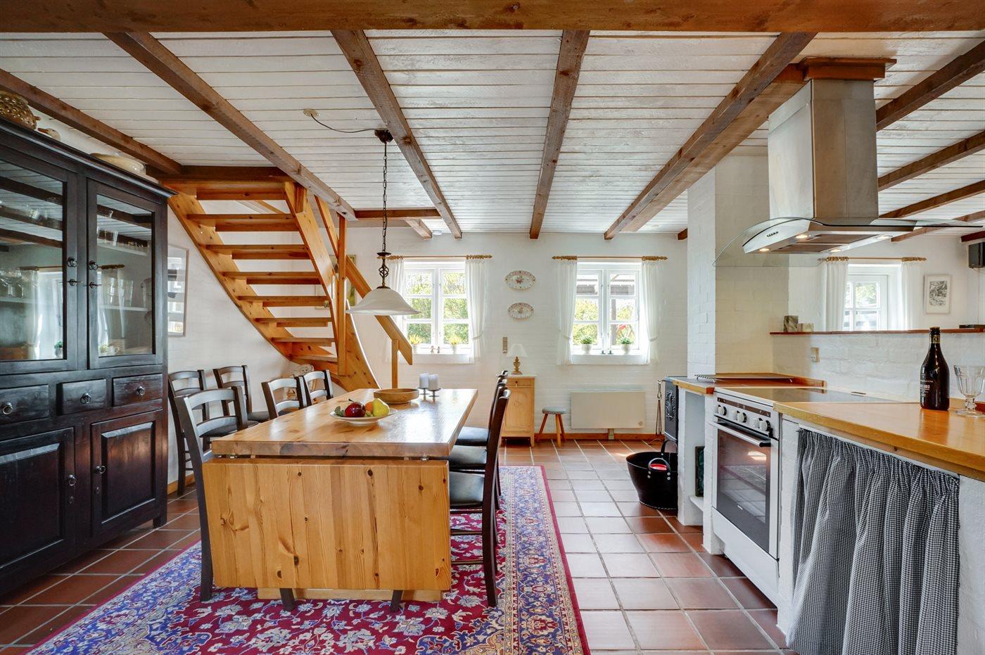 Køkkenet er udstyret med 1 køleskab. Der er 4 keramiske kogeplader, bageovn, varmluftovn, mikrobølgeovn samt opvaskemaskine.