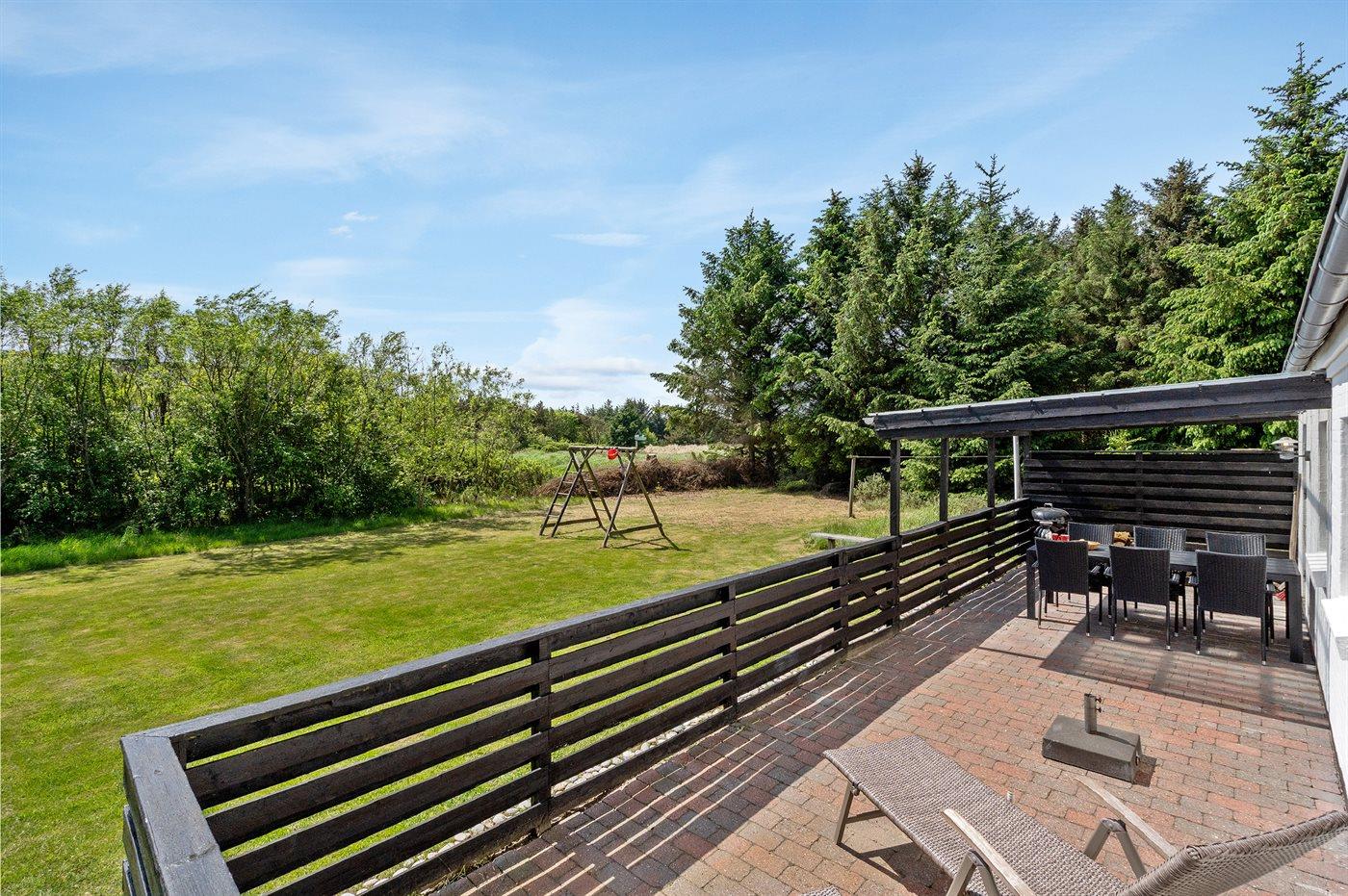 Ferieboligen er beliggende på en 1800 m² stor naturgrund. Der er 900 m til havet. Nærmeste forretning er beliggende i en afstand af 600 m. Til ferieboligen hører 15 m² terrasseareal. Desuden er der 15 m² overdækket terrasse. Gynge. Parkering ved ferieboligen.