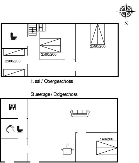 Der er i alt 4 soveværelser. Sovepladserne fordeler sig på: 4 sovepladser i dobbeltsenge. 4 sovepladser i enkeltsenge. Derudover er der 1 stk. barneseng.
