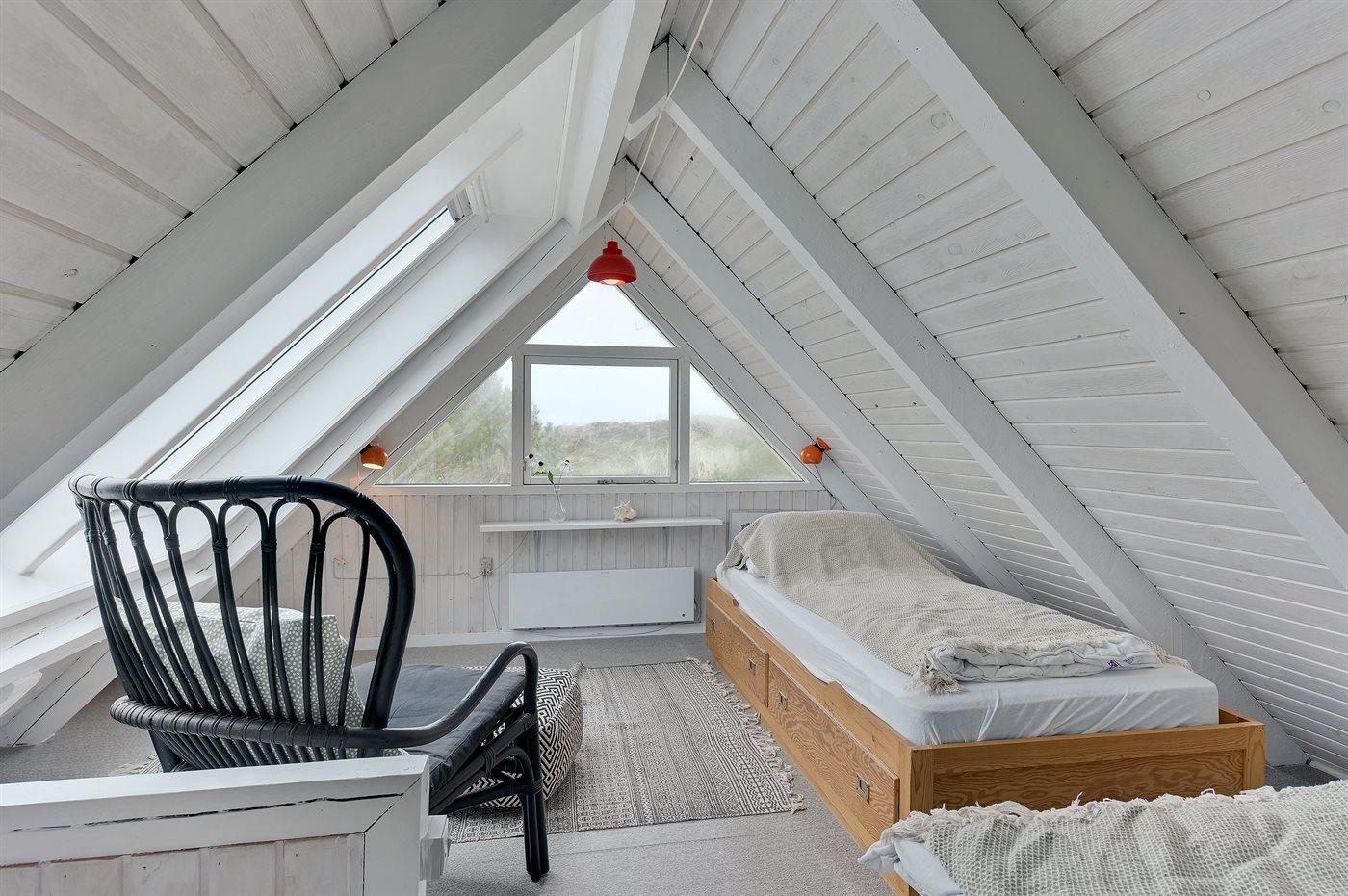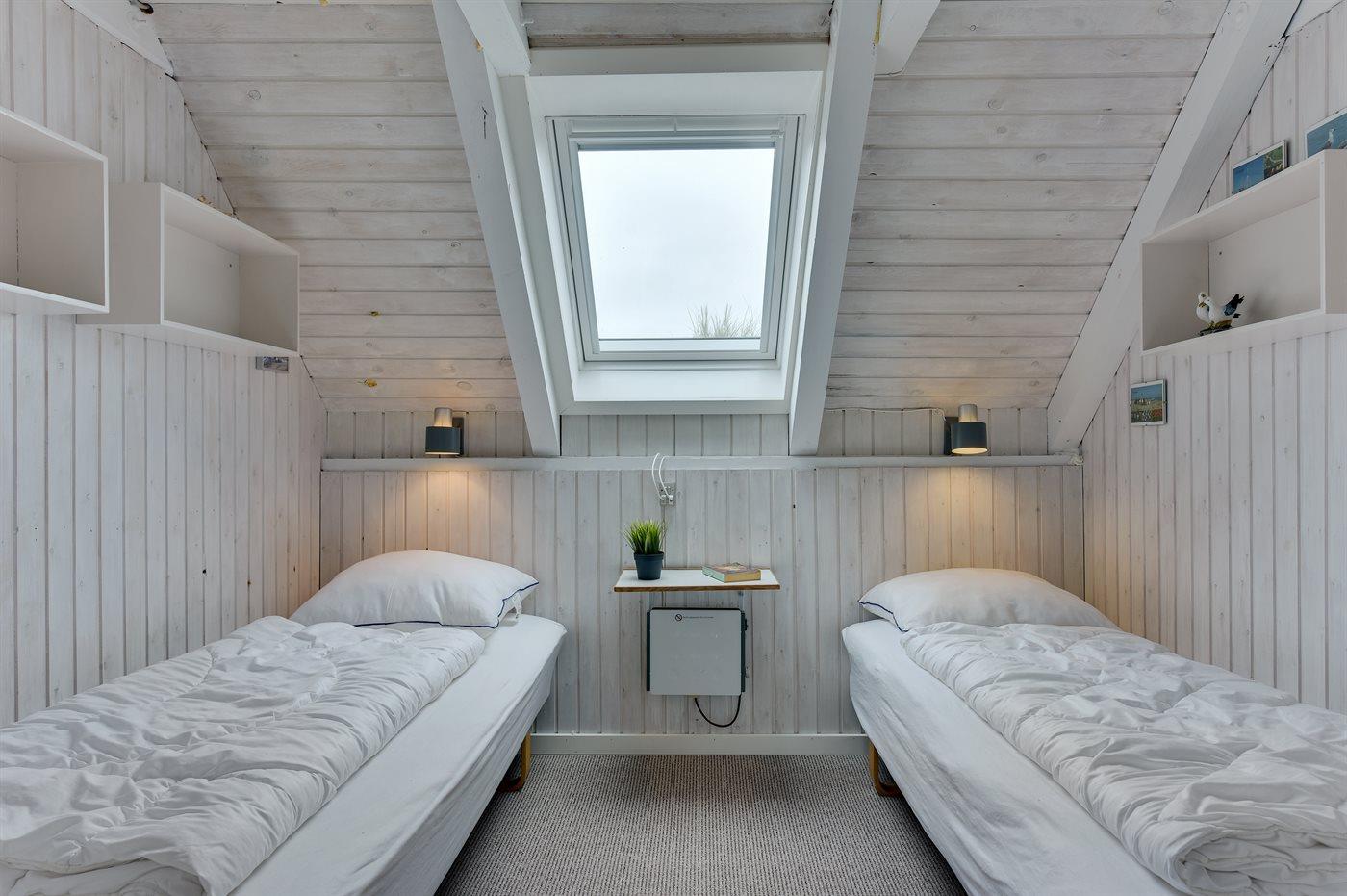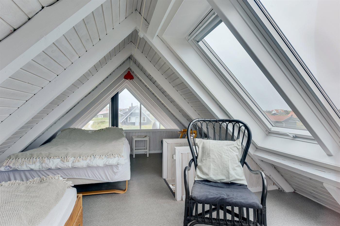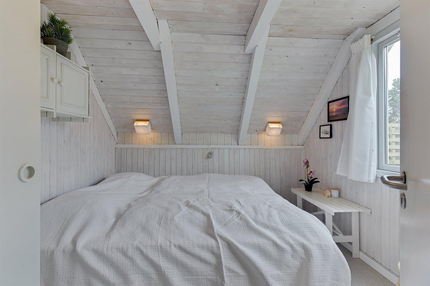 Der er i alt 2 soveværelser. Sovepladserne fordeler sig på: 4 sovepladser i dobbeltsenge. 2 sovepladser i enkeltsenge. 2 af disse sovepladser befinder sig på husets hems.