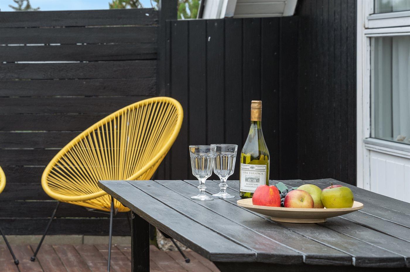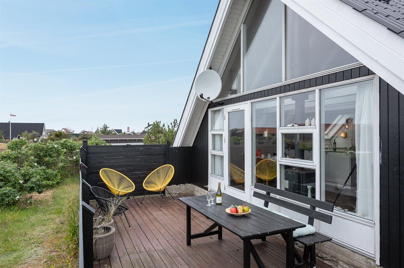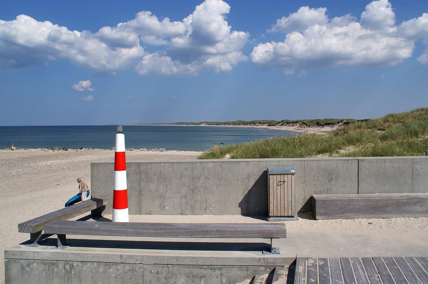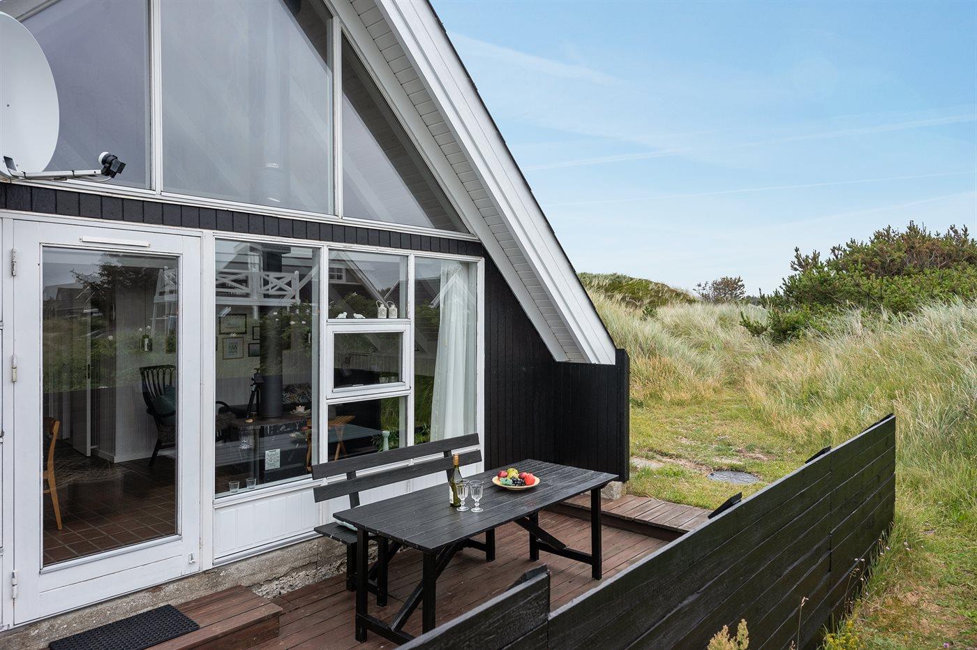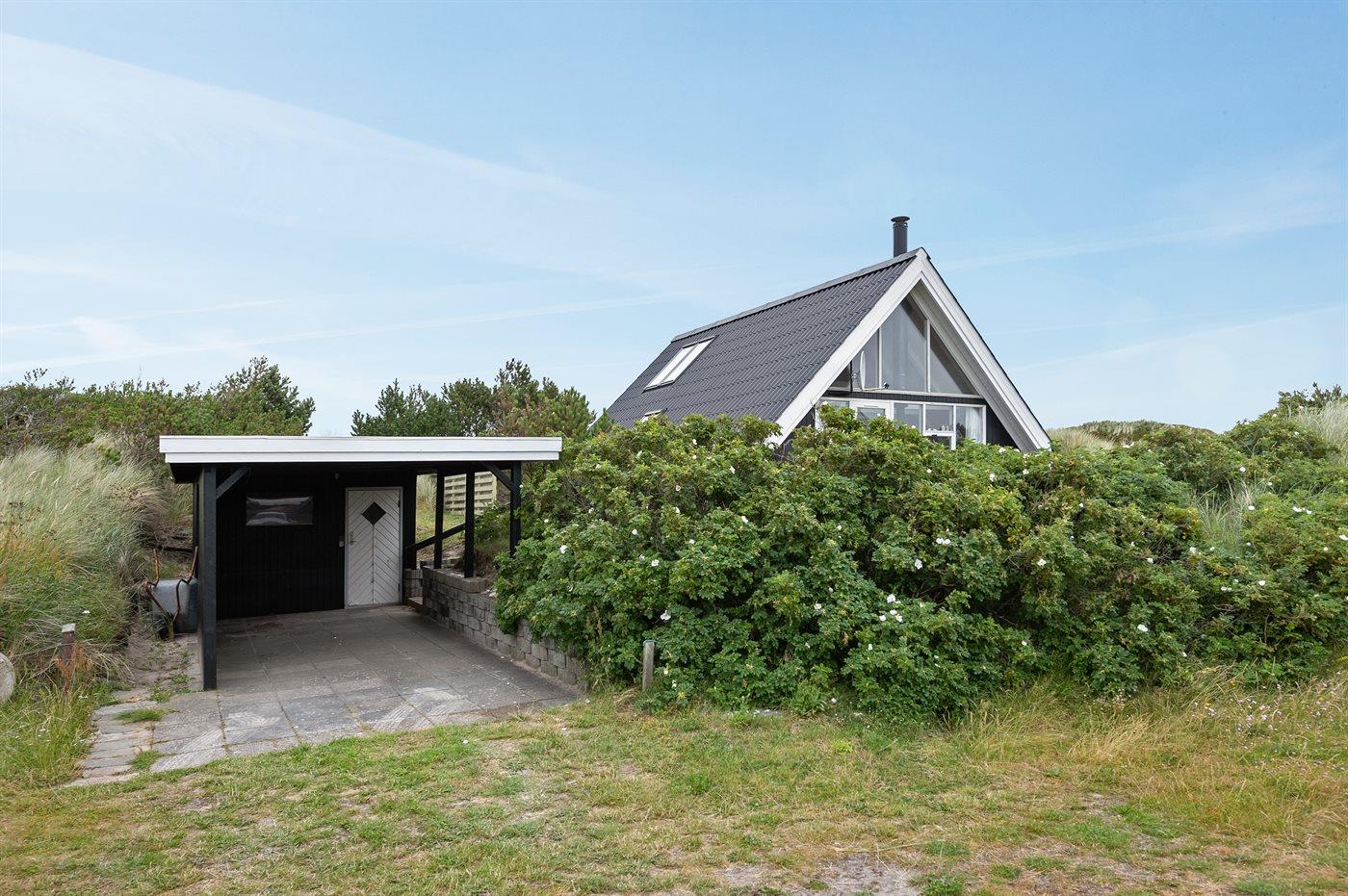 Ferieboligen er beliggende på en 1200 m² stor klitgrund. Der er 200 m til havet. Nærmeste forretning er beliggende i en afstand af 300 m. Der er en golfbane i en afstand af 14000 m. Til ferieboligen hører 20 m² terrasseareal. Desuden er der 12 m² overdækket terrasse. Der er redskabsrum. Sandkasse. Der er carport til rådighed. Parkering ved ferieboligen.