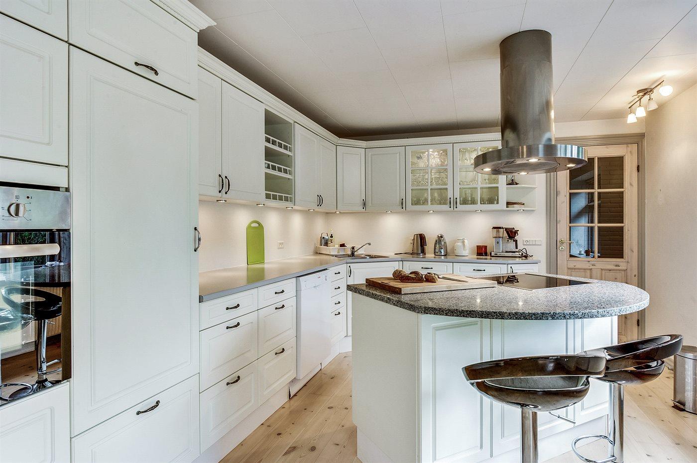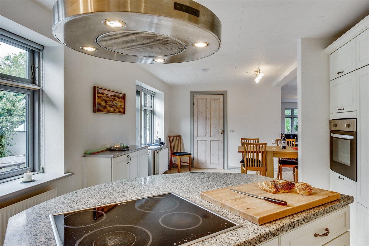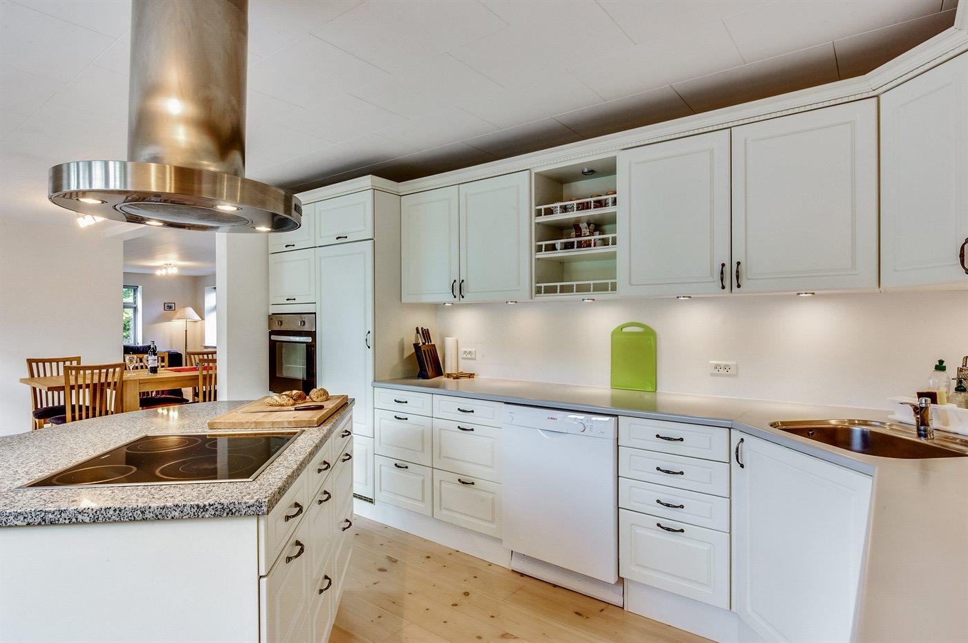 Køkkenet er udstyret med 1 køleskab. Der står 1 ekstra køleskab til rådighed. Der er 4 keramiske kogeplader, varmluftovn, mikrobølgeovn samt opvaskemaskine.
