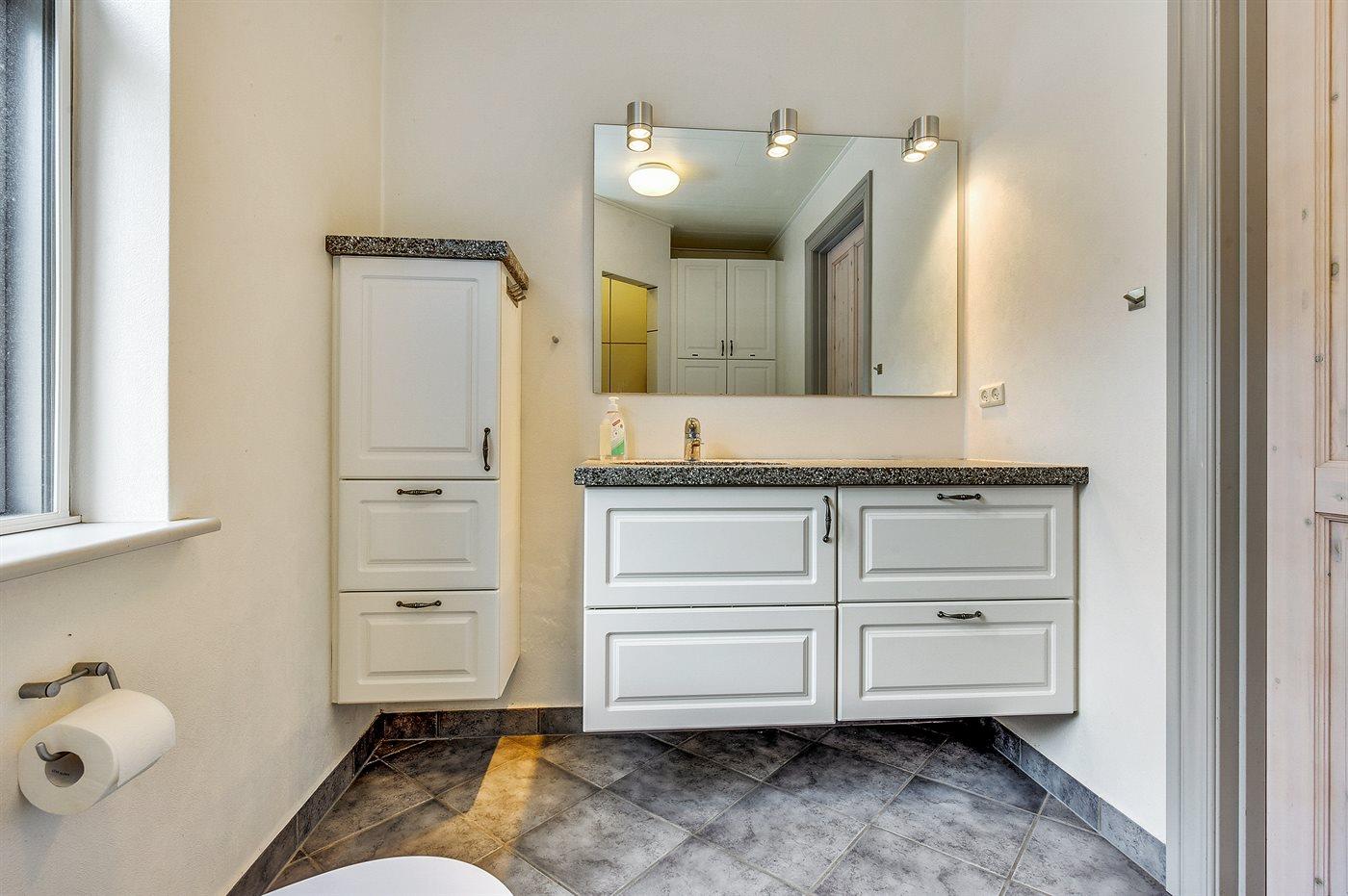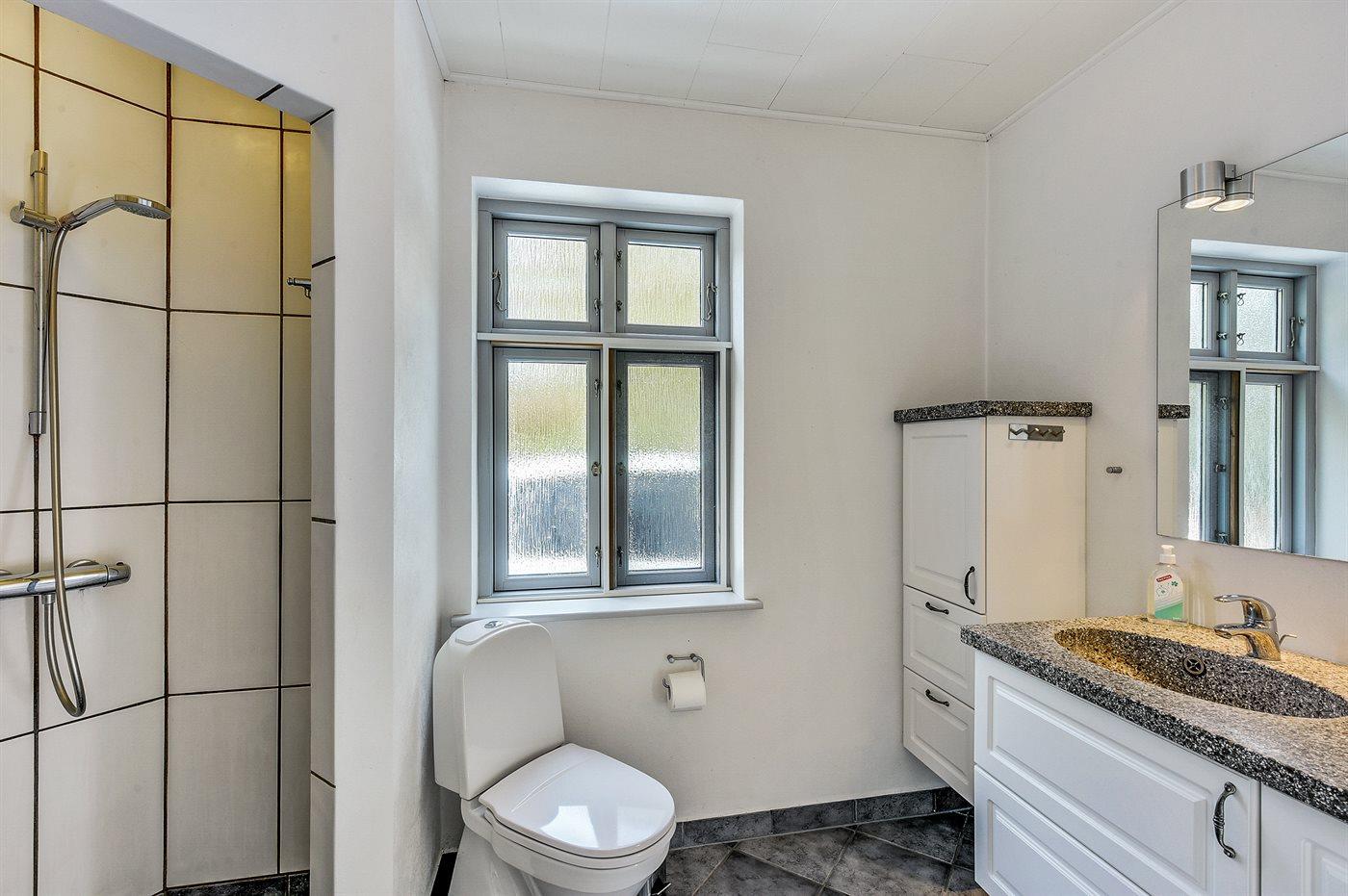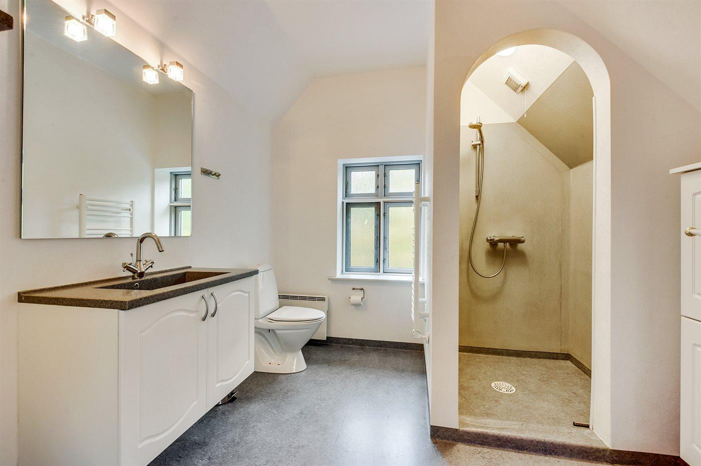 Der er 2 badeværelser med bruseniche og 2 toiletter. Der er gulvvarme på 1 badeværelse.