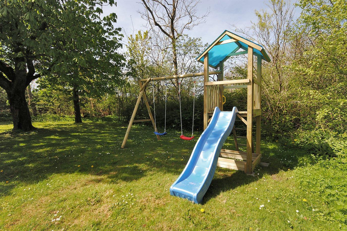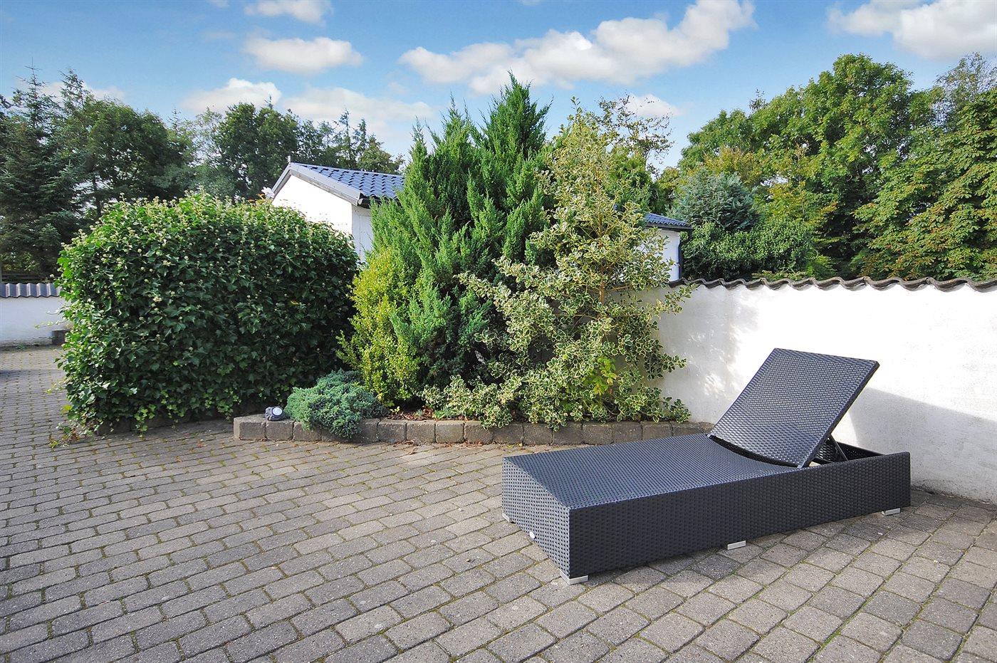 Ferieboligen er beliggende på en 5633 m² stor havegrund. Der er 8000 m til havet. Der er en sø i en afstand af 2000 m. Nærmeste forretning er beliggende i en afstand af 3000 m. Til ferieboligen hører 160 m² terrasseareal. Der er redskabsrum. Gynge. Trampolin. Legetårn. Der er garage til rådighed. Parkering ved ferieboligen.