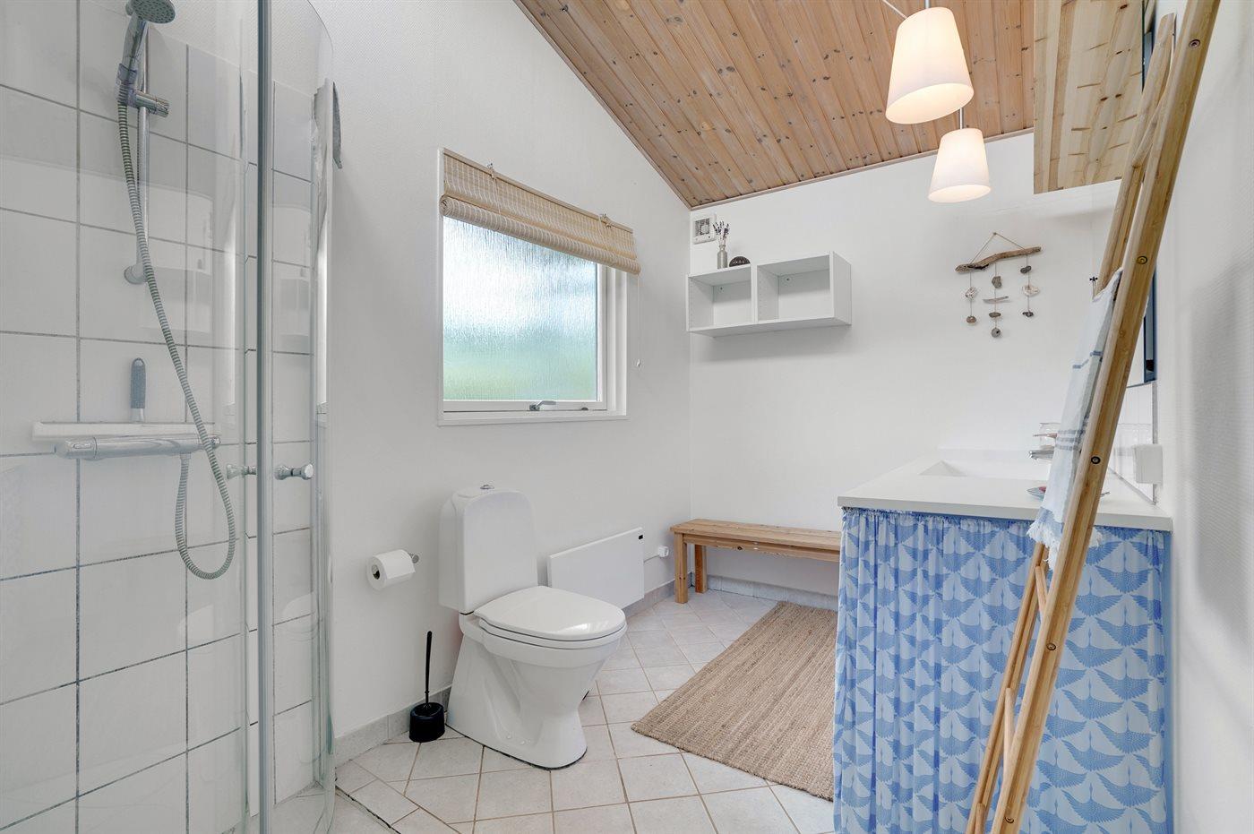 Der er 1 badeværelse med bruseniche og 2 toiletter, heraf 1 gæstetoilet.