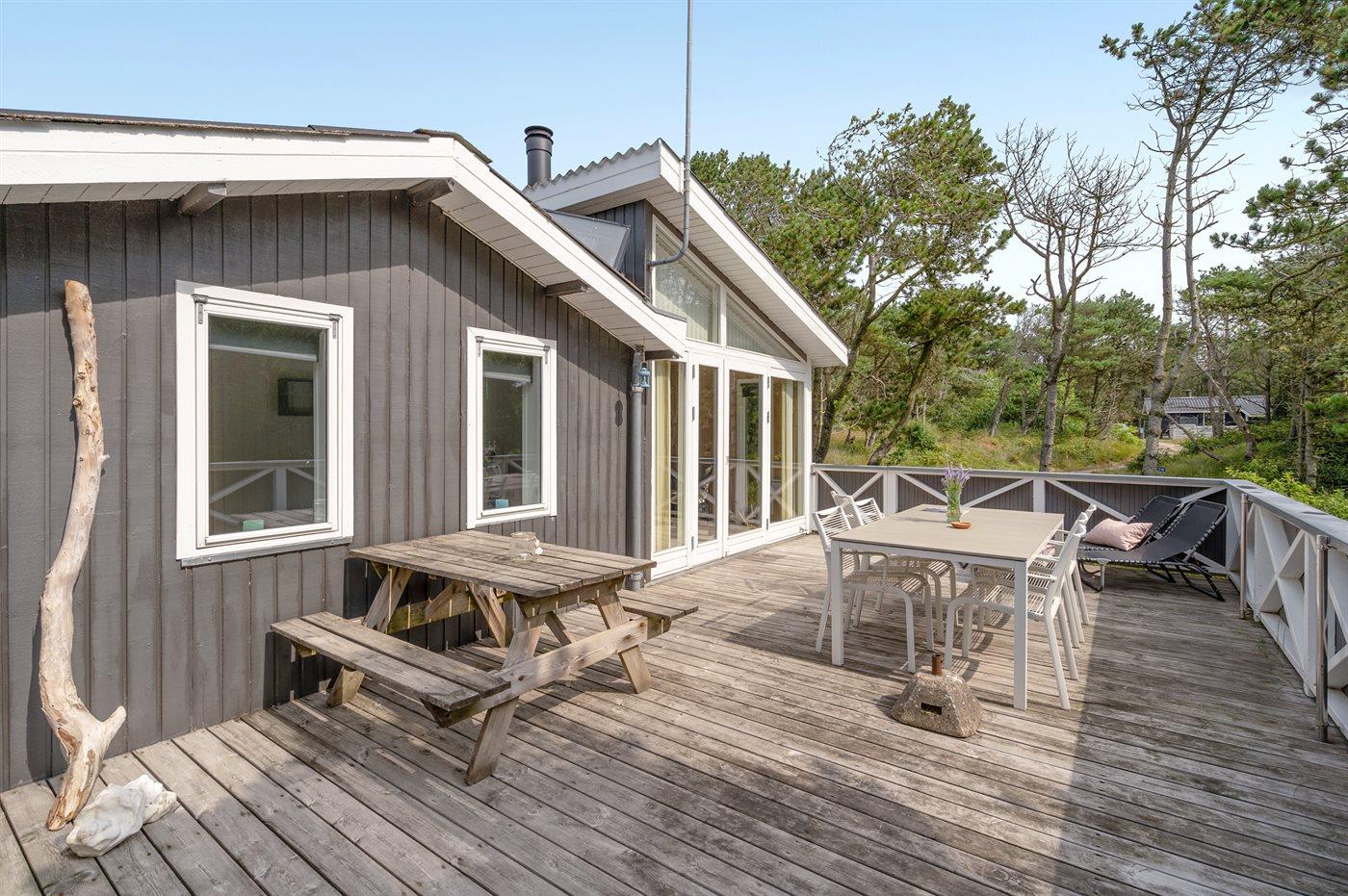 Rummeligt sommerhus med 3 lukkede terrasser i naturskønne omgivelser tæt på Nørre Vorupør.