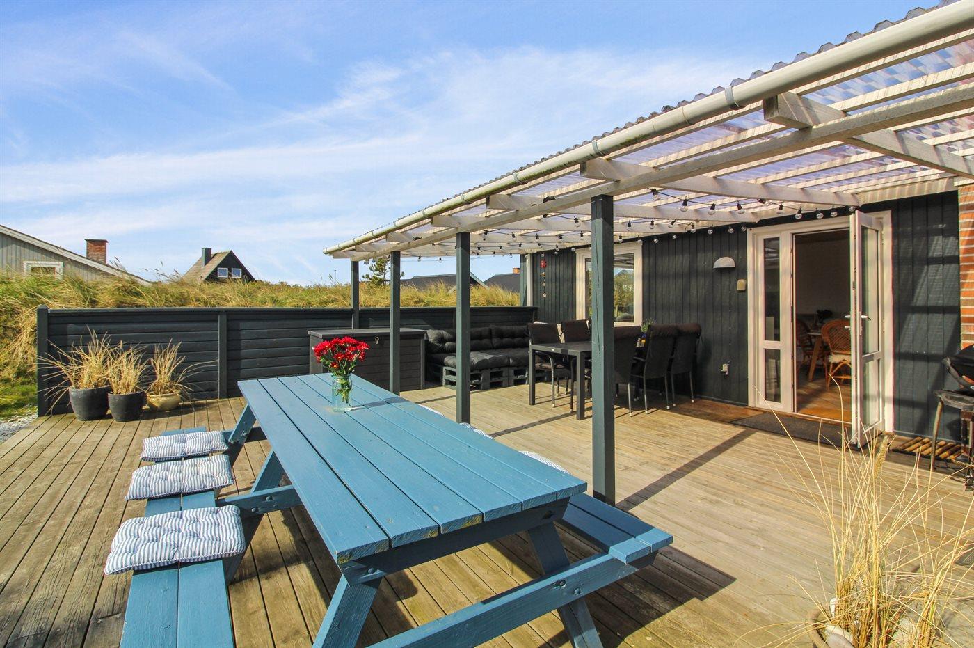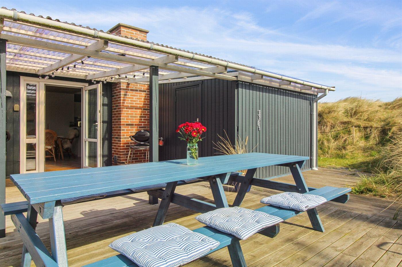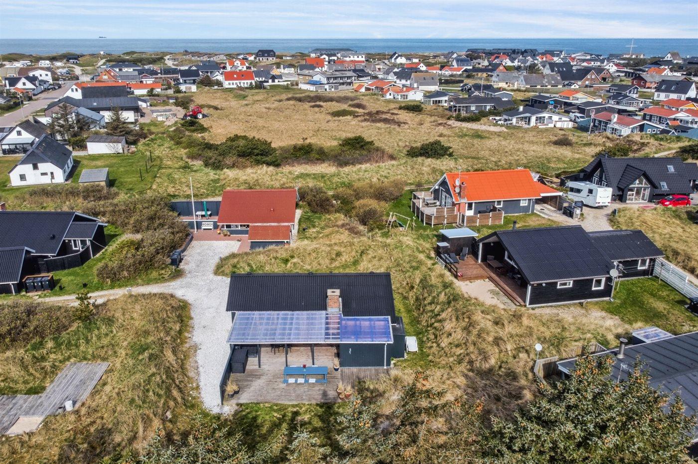 Ferieboligen er beliggende på en 634 m² stor naturgrund. Der er 500 m til havet. Nærmeste forretning er beliggende i en afstand af 500 m. Til ferieboligen hører 30 m² terrasseareal. Desuden er der 30 m² overdækket terrasse. Grill til rådighed. Parkering ved ferieboligen.