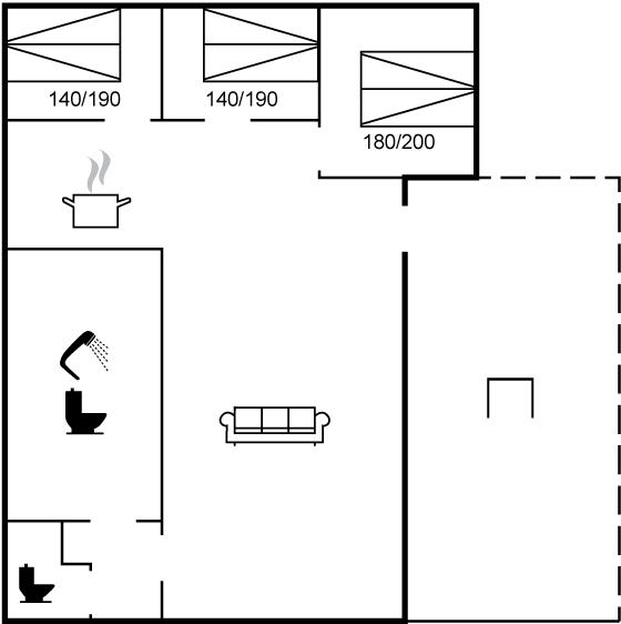 Der er i alt 3 soveværelser. Sovepladserne fordeler sig på: 6 sovepladser i dobbeltsenge. Derudover er der 1 stk. barneseng.
