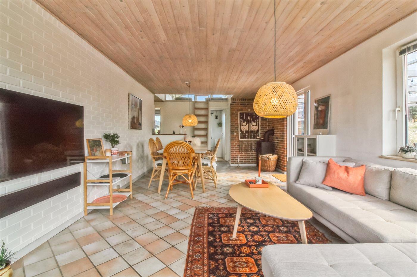Skønt sommerhus i Nr. Vorupør med terrasse, brændeovn og kun 500 m til havet.