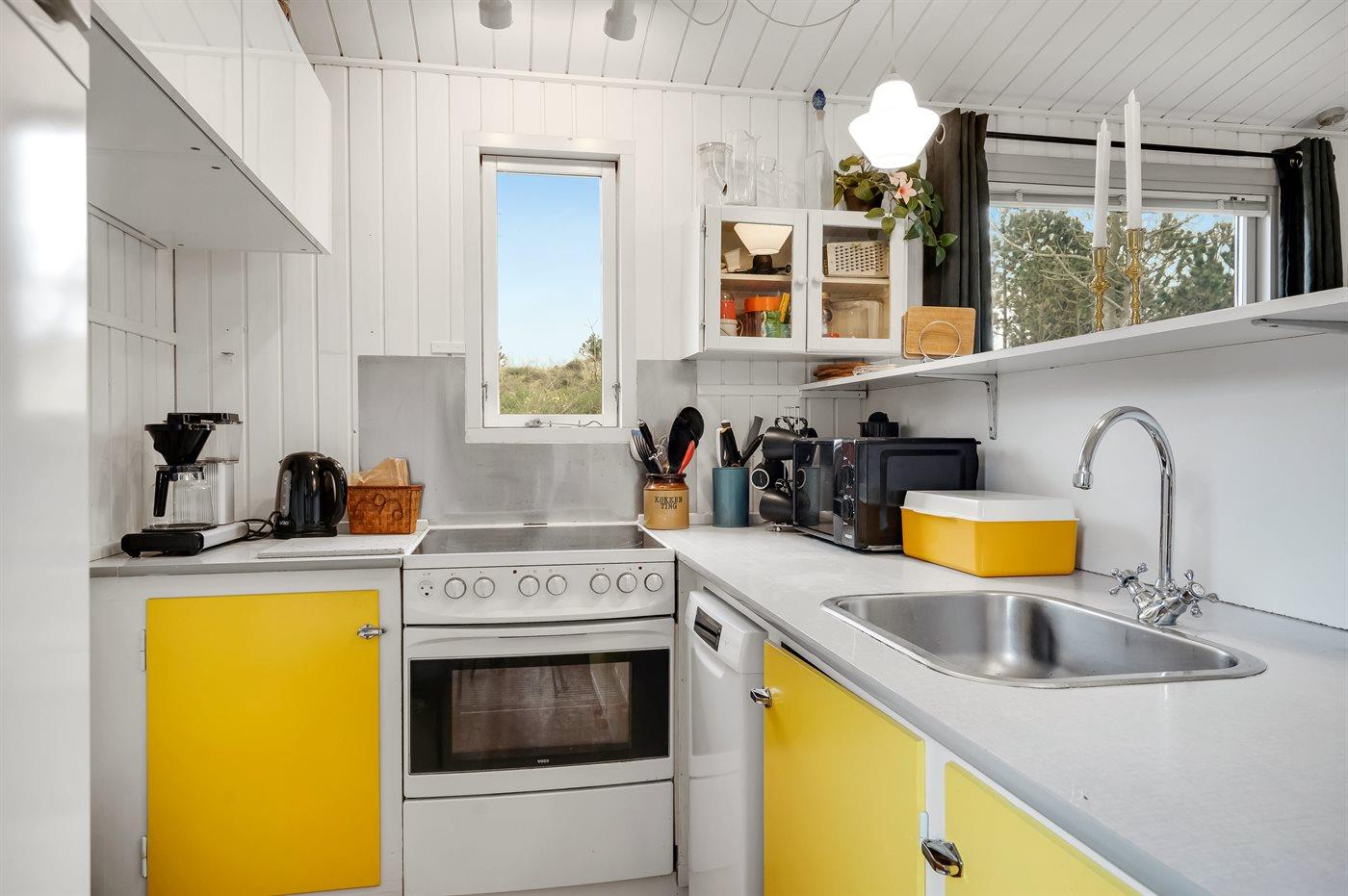 Køkkenet er udstyret med 1 køleskab. Der er 4 keramiske kogeplader, varmluftovn, mikrobølgeovn samt opvaskemaskine.
