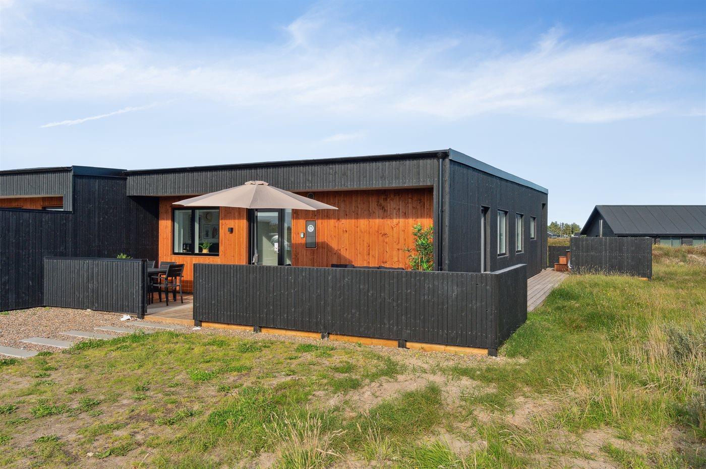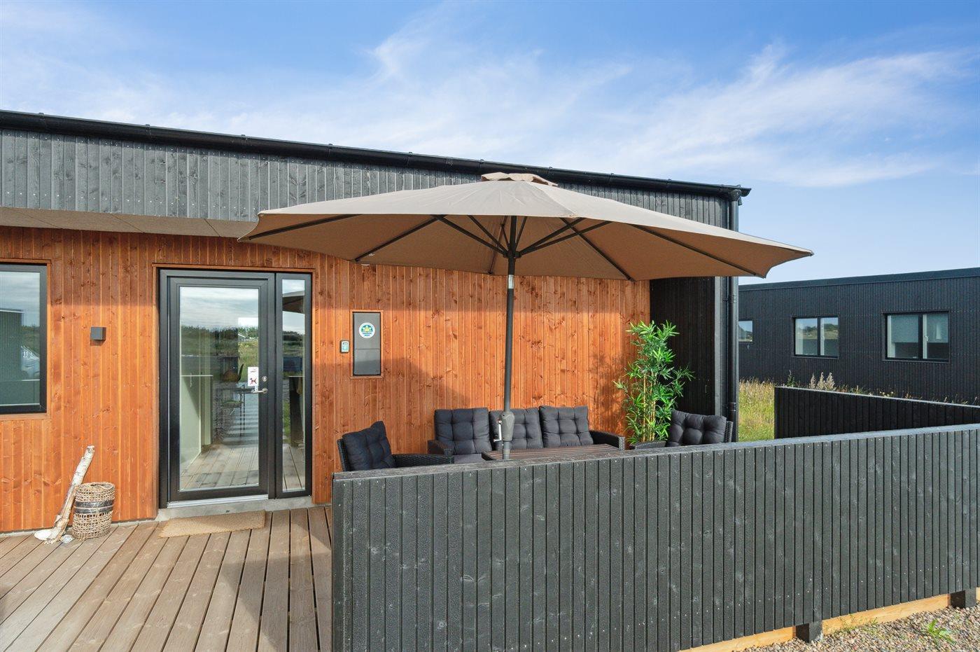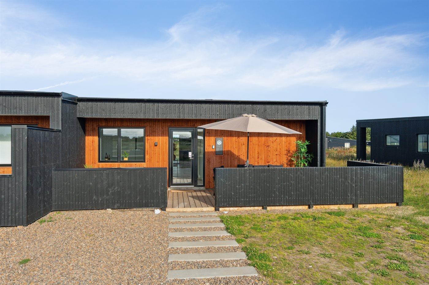 Flot, nybygget dobbelthus fra 2022 beliggende i udkanten af Nørre Vorupør i et fredeligt og naturskønt område. Til sommerhuset hører 2 lækre træterrasser, hvor af 2/3 er overdækket. Terrasserne er indrettet med gode havemøbler, hvorfra morgen- og aftensolen kan nydes.
