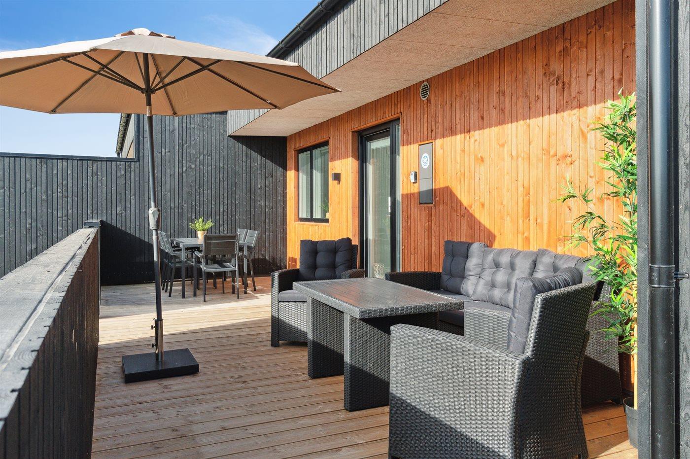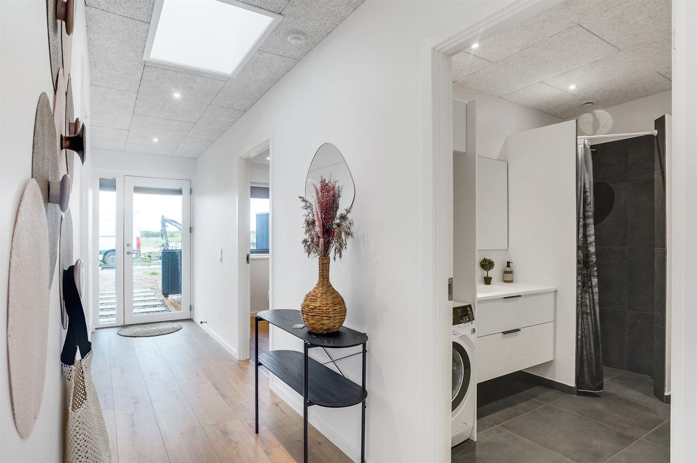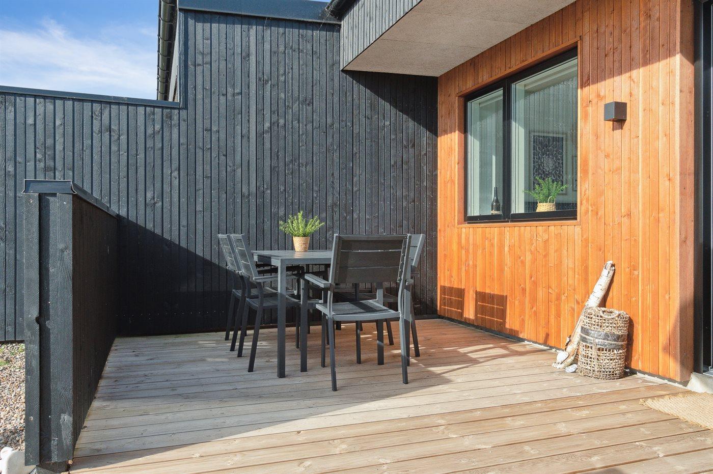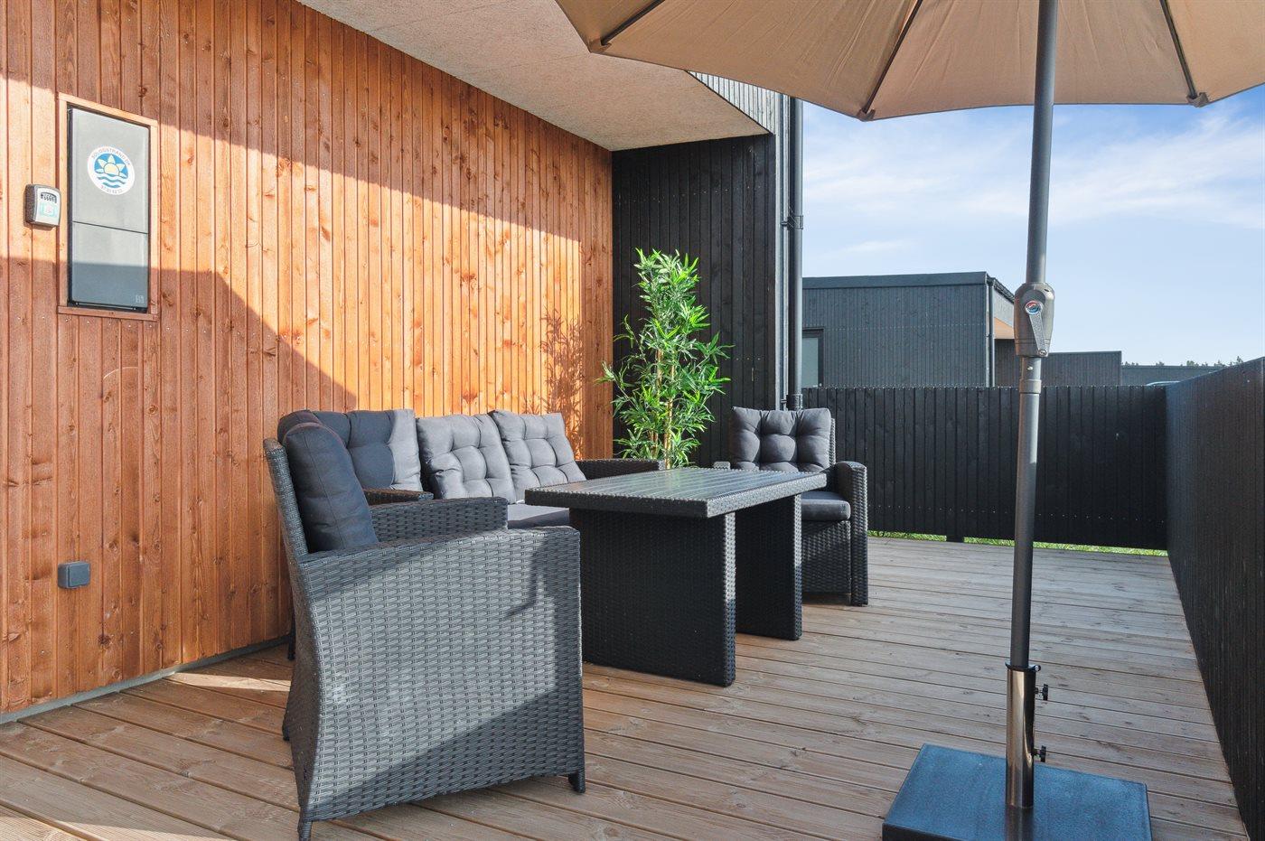 Flot, nybygget dobbelthus fra 2022 beliggende i udkanten af Nørre Vorupør i et fredeligt og naturskønt område. Til sommerhuset hører 2 lækre træterrasser, hvor af 2/3 er overdækket. Terrasserne er indrettet med gode havemøbler, hvorfra morgen- og aftensolen kan nydes.