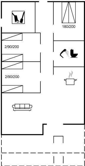 Sommerhuset egner sig til 6 personer samt 1 barn op til 3 år. Ferieboligen er på 98 m² og er bygget i 2022. Det er ikke tilladt at medbringe husdyr. Ferieboligen er udstyret med 1 energibesparende luft til luft varmepumpe. Hele ferieboligen har gulvvarme. Ferieboligen har kombineret vaskemaskine/tørretumbler. Frysekapacitet på 60 liter.