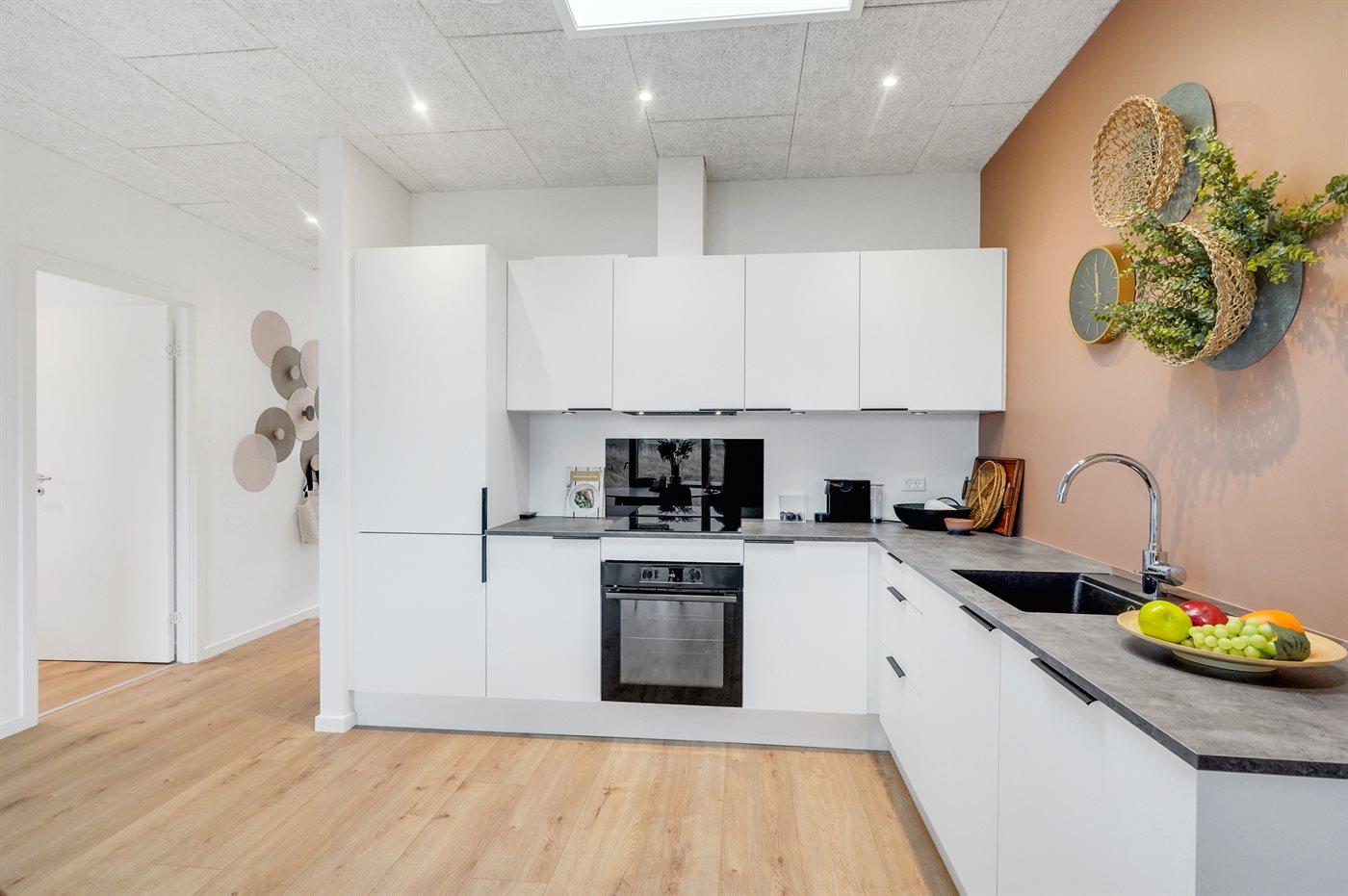 Køkkenet er udstyret med 1 køleskab. Der er 4 induktionskogeplader, varmluftovn samt opvaskemaskine.