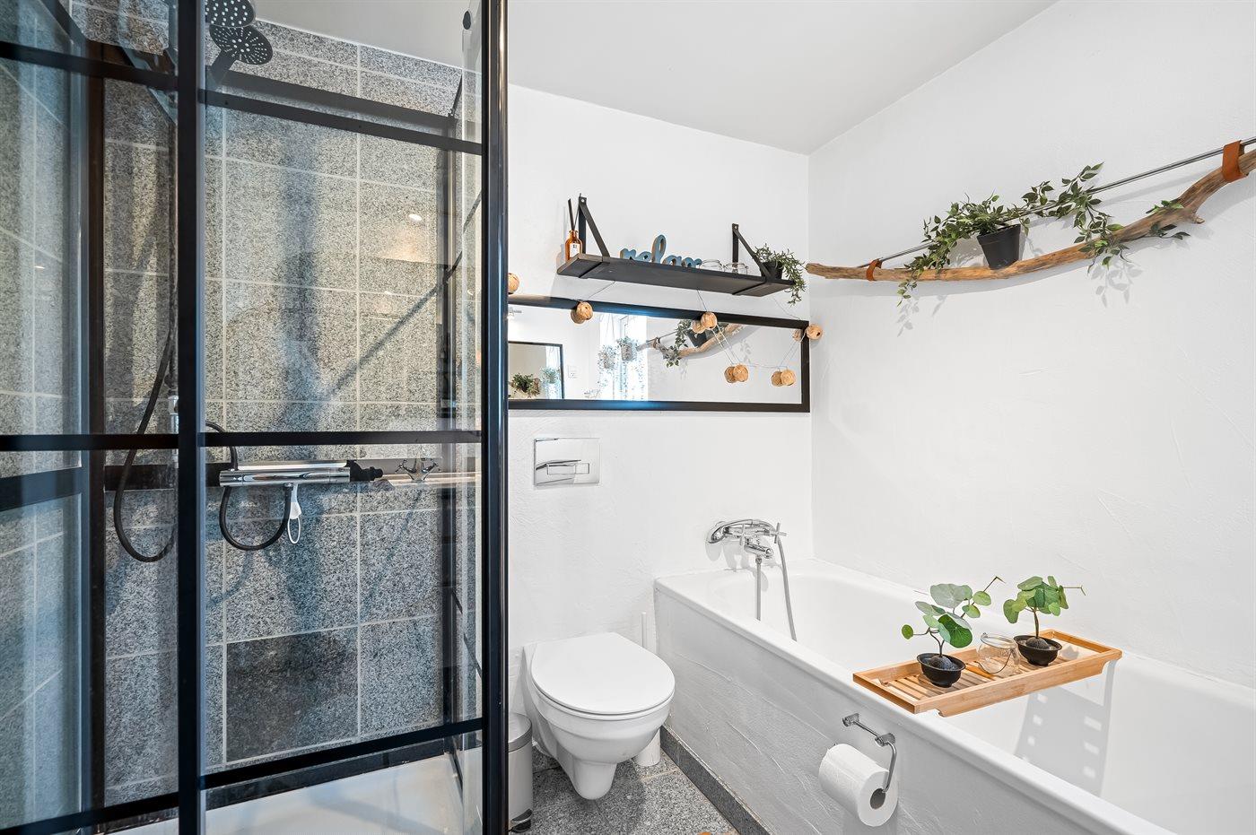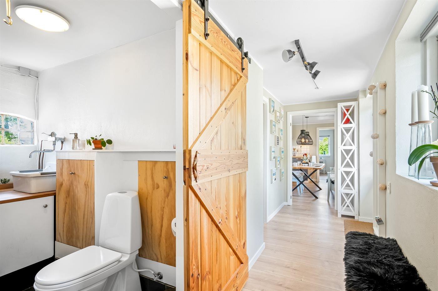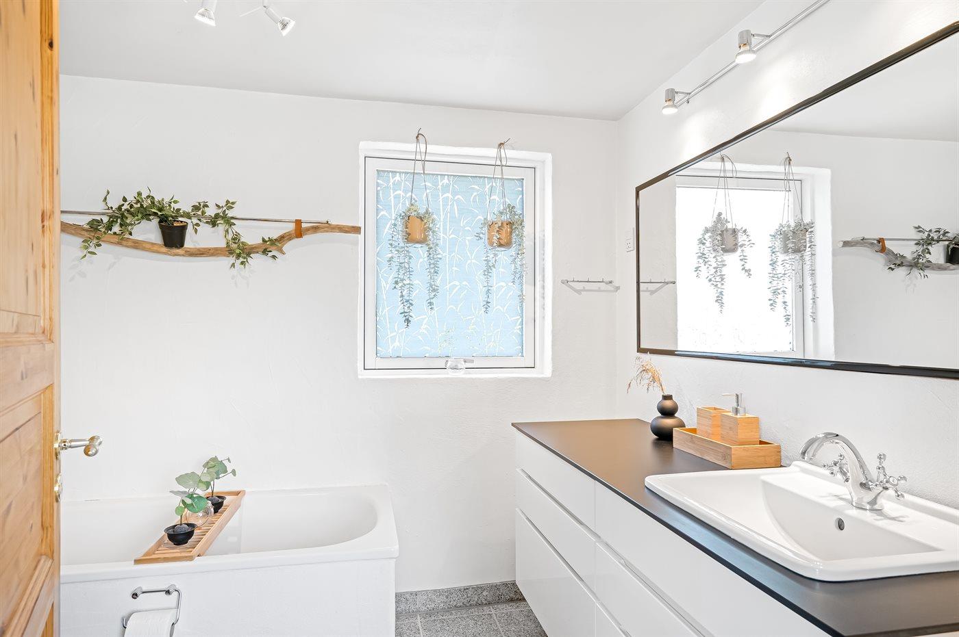 Der er 1 badeværelse med bruseniche og 2 toiletter, heraf 1 gæstetoilet. Der er gulvvarme på 1 badeværelse.. Badekar.