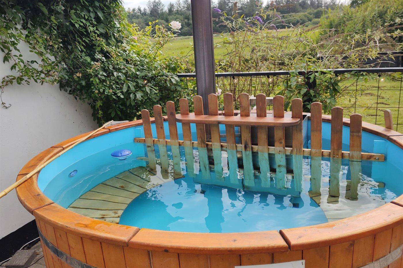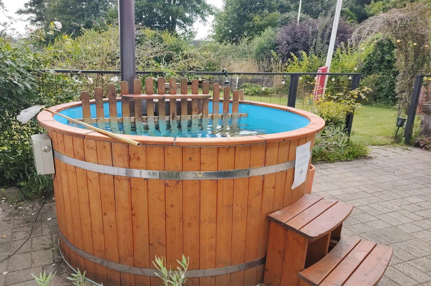 Der er mulighed for afslapning i det udendørs vildmarkskar til 5 personer.