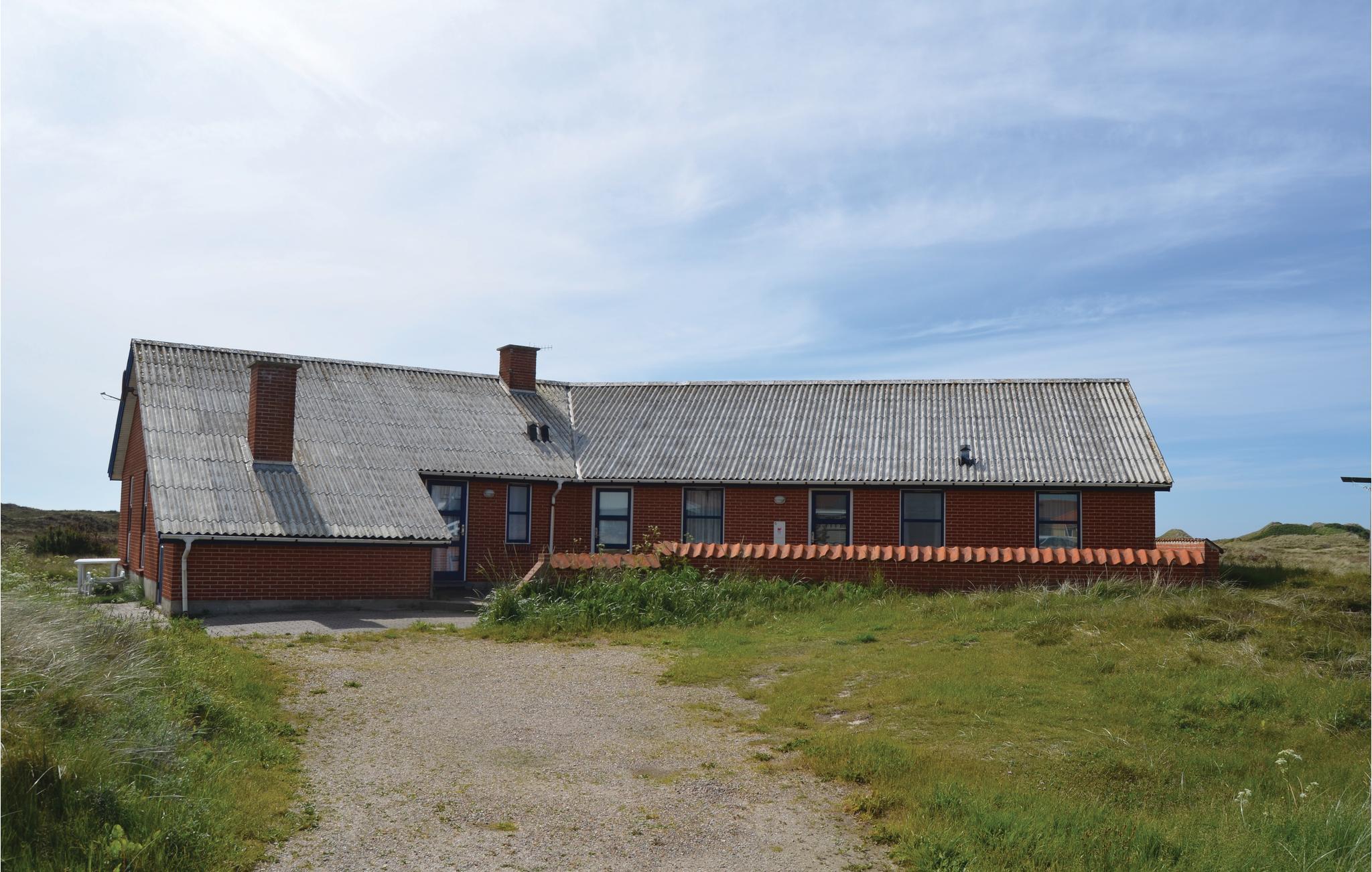 I første klitrække, 300 meter fra stranden og med havudsigt, ligger dette dejlige feriehus på en 4.000 m² klitgrund. Feriehuset er opført i røde mursten og er 186 m². Indvendigt er der hvide vandskurede vægge og fyrretræsbeklædte lofter i både køkken og stue. Gulvene er belagt med teglklinker med gulvvarme, dog er der tæpper i de 5 soveværelser. Fra den store og velmøblerede opholdsstue er der adgang til både den store østvendte terrasse og poolrummet med den ca. 20 m² store swimmingpool, saunaen og spabadet til 2 personer. Hertil kommer 2 badeværelser med vaskemaskine og tørretumbler i det ene - i begge badeværelser er der naturligvis gulvvarme. På den kuperede grund er der rig mulighed for udfoldelse for alle aldre. Huset er meget velegnet til flere familier.