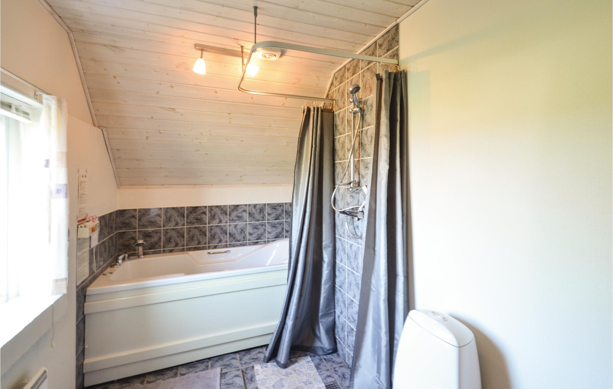 Dette hus består af 3 soveværelser, et badeværelse med badekar og et køkkenalrum.