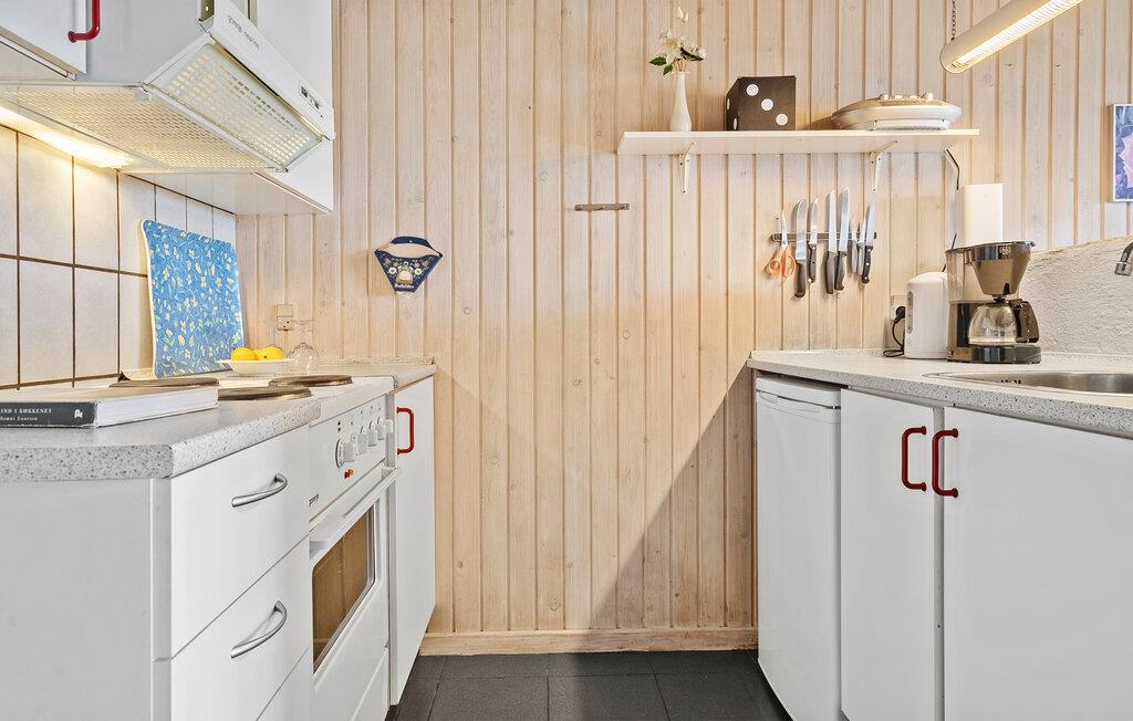 Dette kompakte hus byder jer velkommen med sin varme atmosfære. Nyd den gode beliggenhed og start ferien på en afslappet måde. Interiøret er præget af naturlige materialer og kærlige detaljer. Det åbne køkken bag den rustikke stenmur er funktionelt udstyret og tilbyder plads til fælles madlavning. Familien samles ved det tilstødende spisebord for at nyde måltider eller planlægge udflugter. Læn jer så tilbage i sofaen, afslut dagen med en bog eller en film og mærk den hyggelige varme fra brændeovnen.