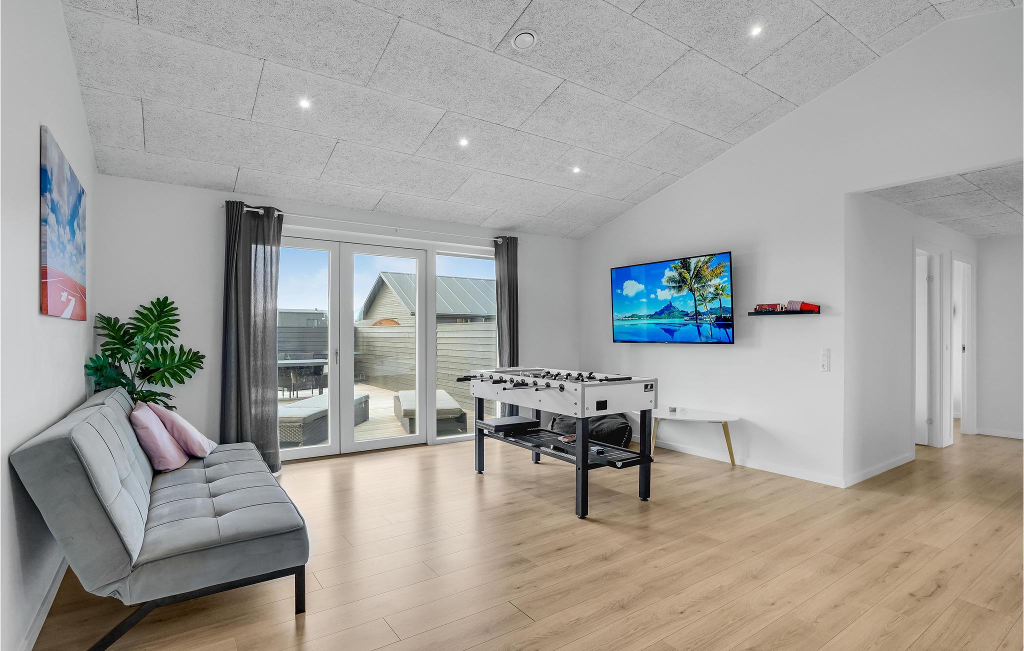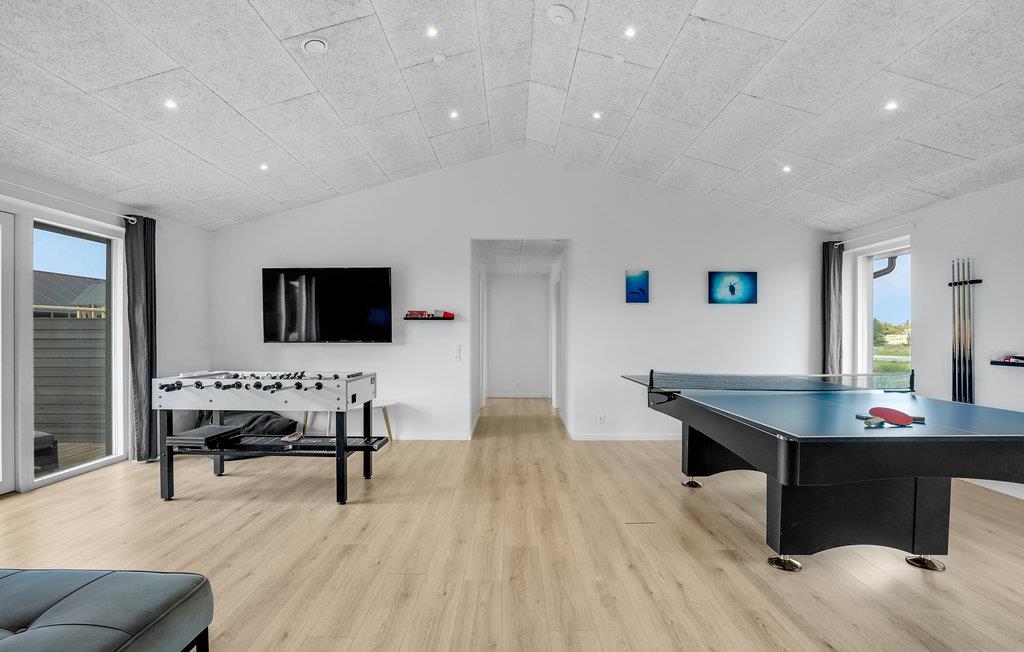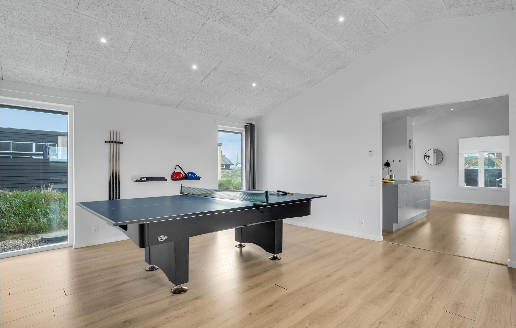 En lang række aktivitetsmuligheder venter jer indenfor. Her kan I finde jer til rette i det åbne opholdsrum med komfortabelt sofasæt, mens de sportslige kan kaste sig over en bordtennisturnering. Udendørs står den på solbadning og grillhygge. Det idylliske sommerhus ligger omgivet af skøn natur, hvilket gør det oplagt at tage ud på hyggelige gåture. Når I vender forblæste tilbage, er der både indendørspool og en sauna til rådighed, så I kan få varmen igen.