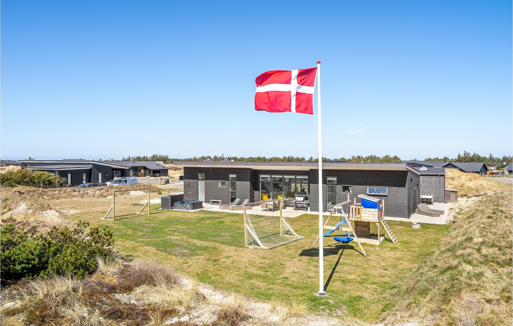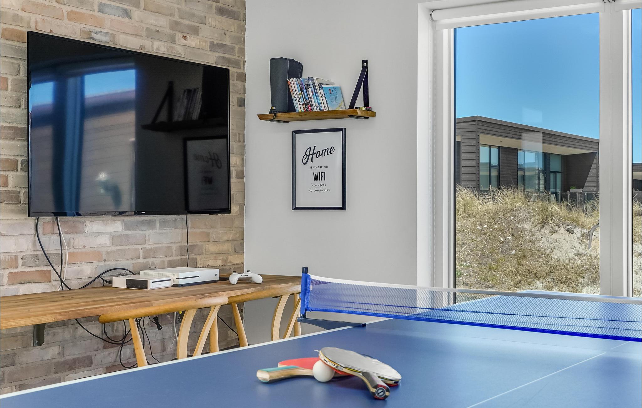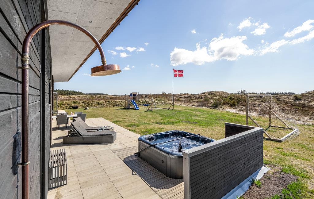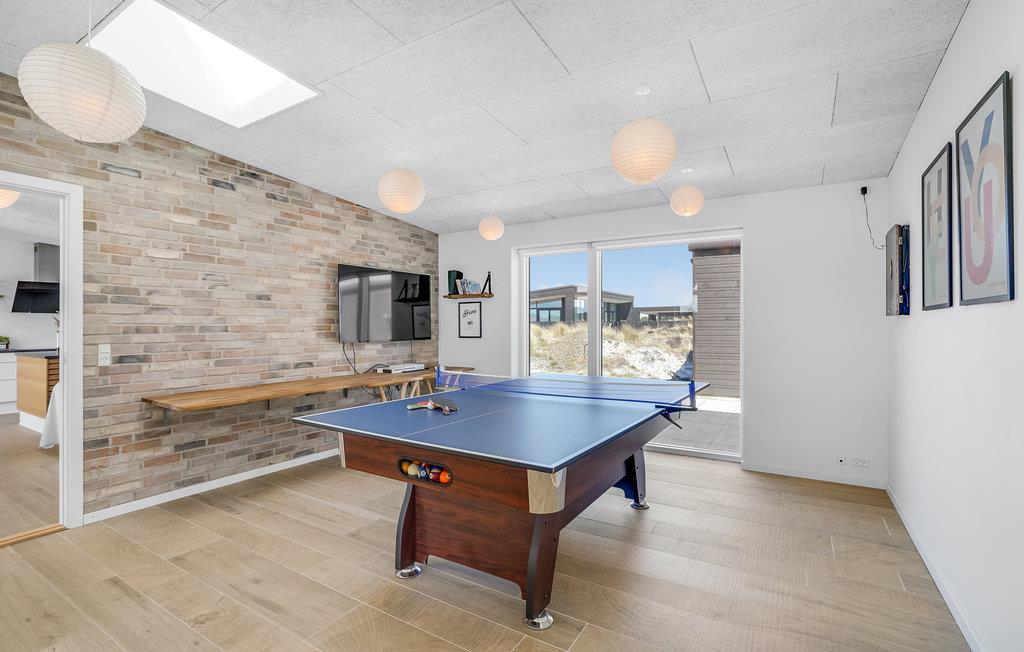 Glæd jer til en ferie i Vorupør, som I virkelig vil kunne huske. Her ligger dette herlige hus, som er indlejret i et enestående landskab og emmer af maksimal komfort. Glæd jer til at samles omkring spisebordet og tag et spil bordtennis eller billard i aktivitetsrummet, mens maden bliver klar. Slip børnene løs i haven, hvor der står legestativer, mens I læner jer tilbage med en kop kaffe på terrassen. Efter en dag fyldt med eventyr er det ren luksus at sætte sig i whirlpoolen med en kold drink ved hånden, og i efterårssæsonen kan I få varmen i saunaen efter en lang gåtur ved vandet.