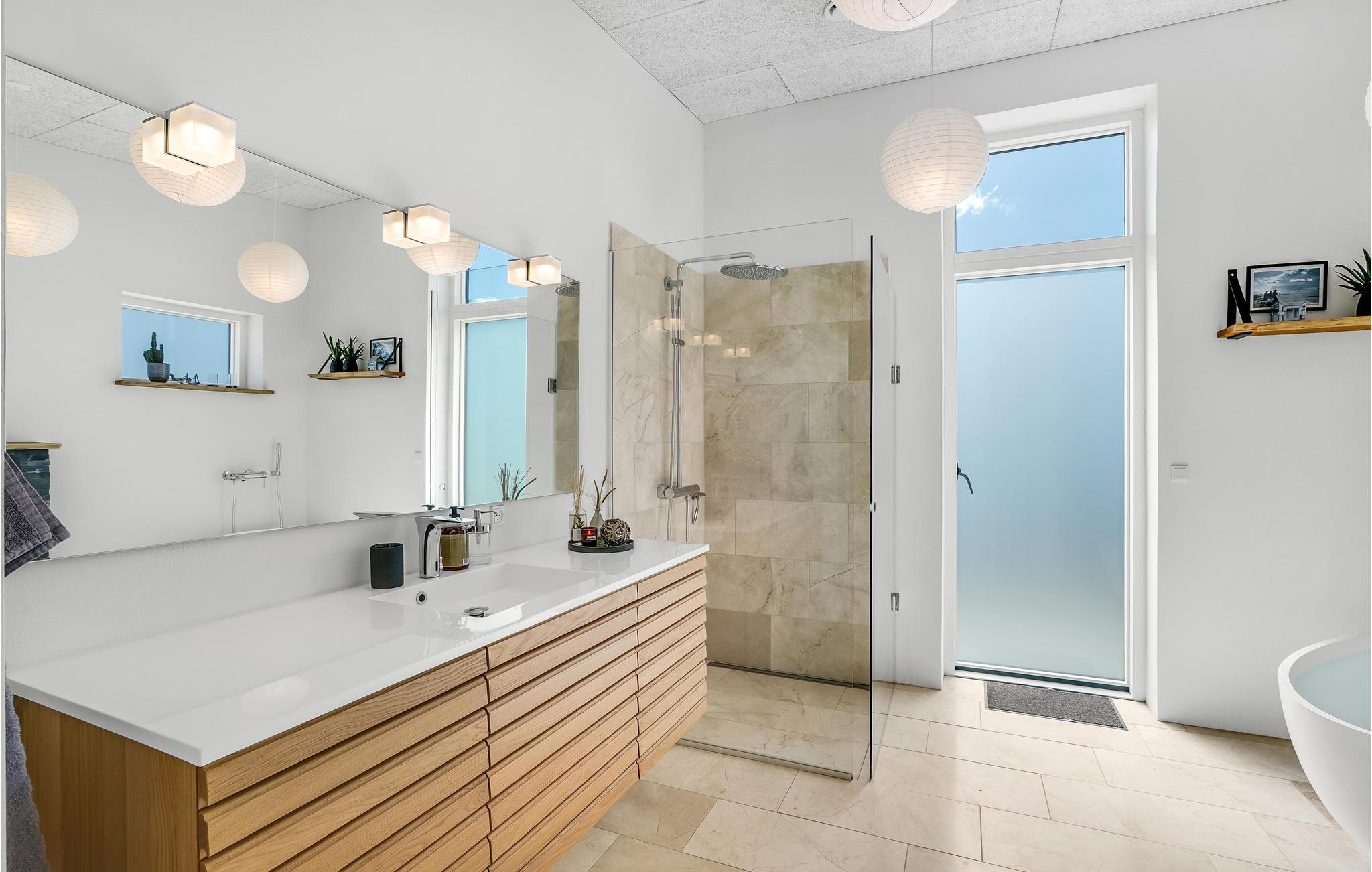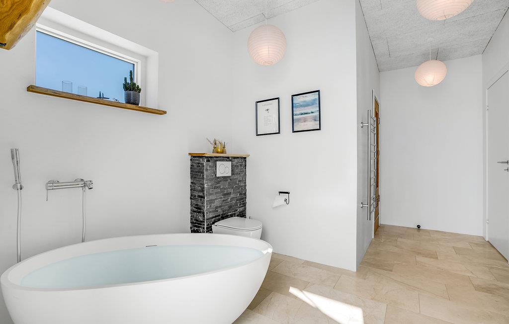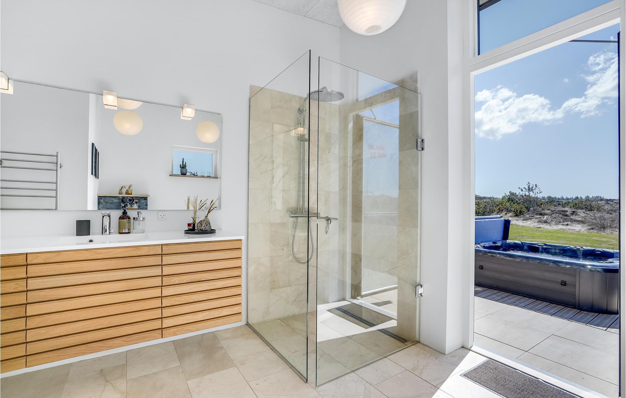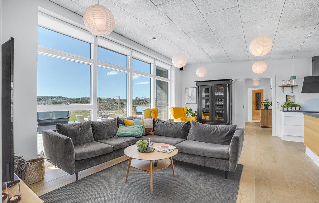 Glæd jer til en ferie i Vorupør, som I virkelig vil kunne huske. Her ligger dette herlige hus, som er indlejret i et enestående landskab og emmer af maksimal komfort. Glæd jer til at samles omkring spisebordet og tag et spil bordtennis eller billard i aktivitetsrummet, mens maden bliver klar. Slip børnene løs i haven, hvor der står legestativer, mens I læner jer tilbage med en kop kaffe på terrassen. Efter en dag fyldt med eventyr er det ren luksus at sætte sig i whirlpoolen med en kold drink ved hånden, og i efterårssæsonen kan I få varmen i saunaen efter en lang gåtur ved vandet.
